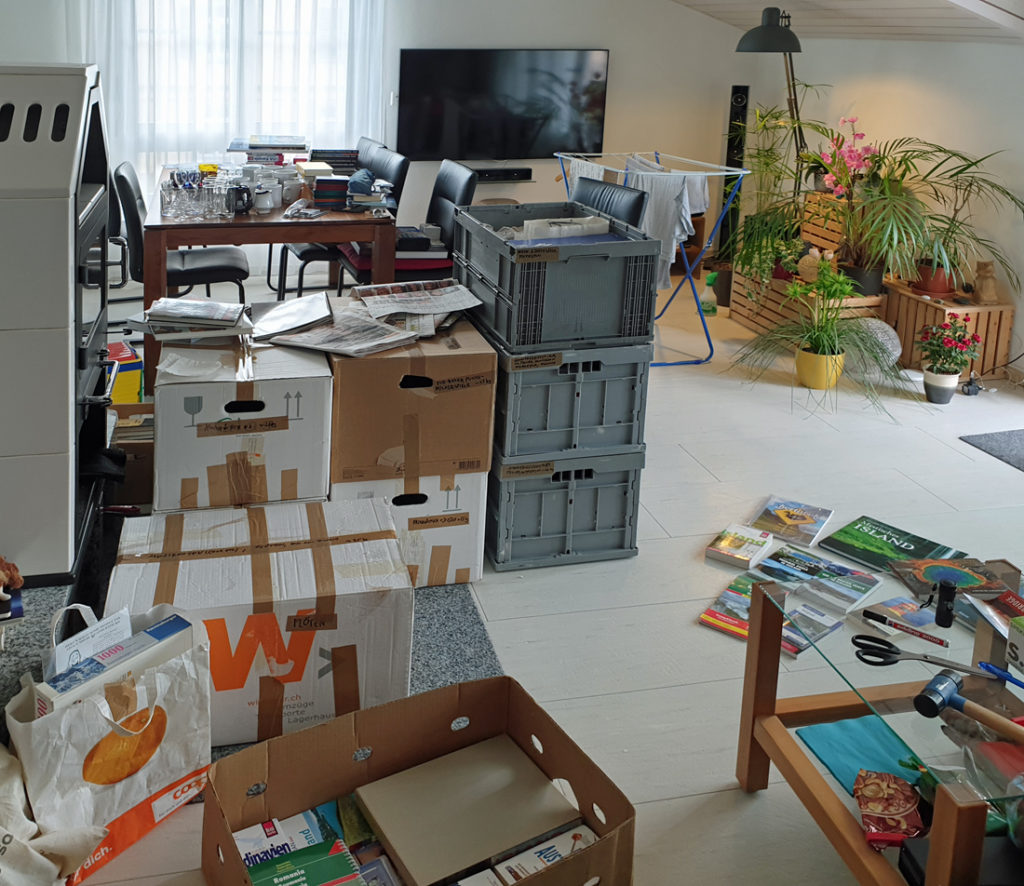 Und dank der starken Männer von der Hauruck AG sind auch die Möbel und die gepackten Kisten bereits eingelagert.