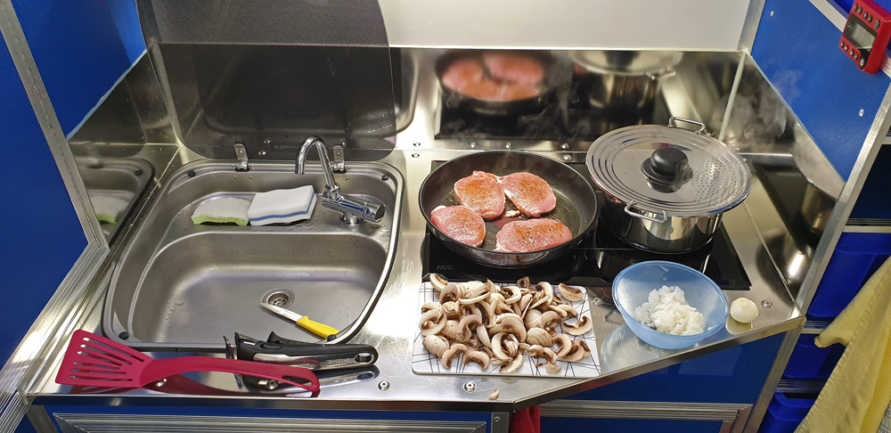 Dank Mike durften wir dann auf dem Hof der Frightliner-Niederlassung in Portland übernachten, wo wir unser erstes Menü im Camper gekocht haben. – Nun sind wir also «richtig angekommen».