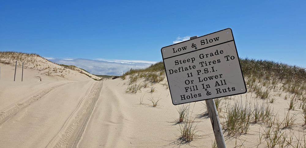 Wir hatten uns dann überlegt, im Nationalpark ein SCV und ORV-Permit zu lösen (auf Deutsch: eine Erlaubnis für eigenständige und offroadtaugliche Fahrzeuge – wie wir eins haben). Damit dürfte man auf ausgeschilderten Strecken durch die Dünen und auf dem Strand fahren und auf dem Race Point Beach auf zwei ausgewiesenen Strandabschnitten übernachten. Man muss dafür bei einem Büro vorbei, wo das Fahrzeug begutachtet wird und wenn es alle Voraussetzungen erfüllt, die entsprechende Erlaubnis erhält. Da diese für eine kürzere Periode teuer ist und das Wetter eher stürmisch und vor allem im Moment die Befahrbarkeit wegen der Brutsaison stark eingeschränkt war, haben wir dann aber darauf verzichtet.