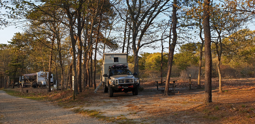 Stattdessen übernachteten wir vier Nächte auf dem Atlantic Oaks Campground bei Eastham. Hier durften wir mit unserem kleinen Camper auf einem Zeltplatz stehen. Der Camping gehört zur «Good Sam»-Kette und indem wir gleich eine Jahresmitgliedskarte gelöst haben, erhielten wir gleich noch 10% Rabatt. Der Camping ist grosszügig angelegt, mit Bäumen bewachsen und sehr ruhig, es gibt wunderbare, warme Duschen und auch die Wäsche kann hier bestens erledigt werden. Und nicht zuletzt befindet er sich in Gehdistanz zu Arnold’s Lobster & Clam Bar…