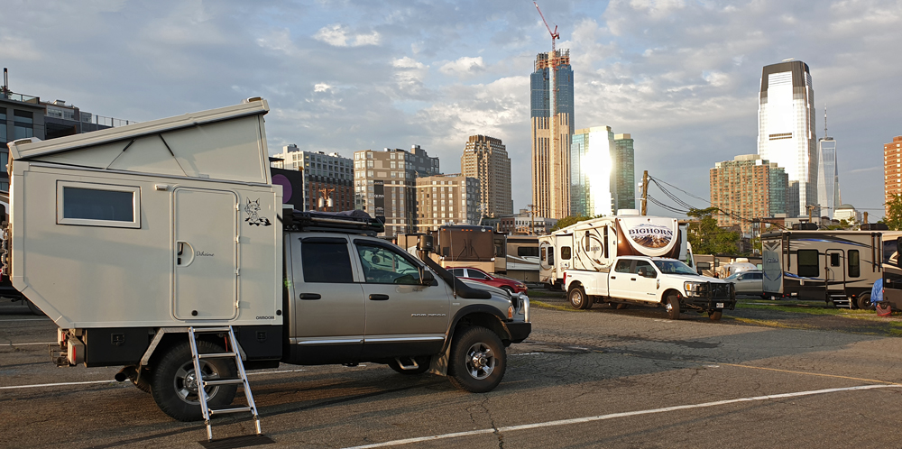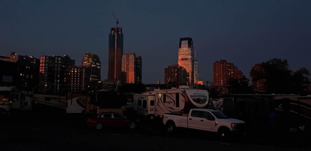 Nachdem wir uns – dann auch noch bei einem starken Gewitter – auf der Interstate durch die Bronx, über die doppelstöckige George Washington-Brücke und durch das Labyrinth der Strassen in Jersey City gekämpft haben – der Verkehr hier ist ein echter Alptraum – langen wir endlich auf dem Liberty Harbor RV Park an.