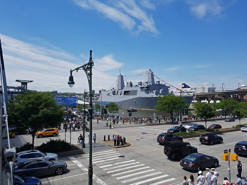 Die danebenliegende, in Dienst stehende «USS New York», ein Amphibous Transport Dock der San Antonio-Klasse, wäre während der Fleet Week auch zu besichtigen, da sind uns aber zu viele Leute.