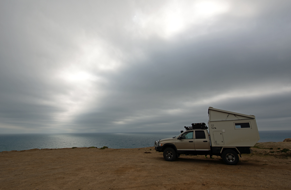 Unterhalb des Leuchtturms finden wir wieder einen sehr schönen Übernachtungsplatz direkt am Meer. Wir schlafen begleitet vom lauten Rauschen der Wellen ein und fallen mitten in der Nacht vom sehr lauten Tuten des Nebelhorns fast aus dem Bett... Wenigstens hört der Krach nach 20 Minuten wieder auf, sonst hätten wir morgens um 2 h eine Ortsveränderung machen müssen.