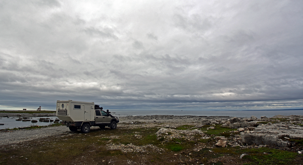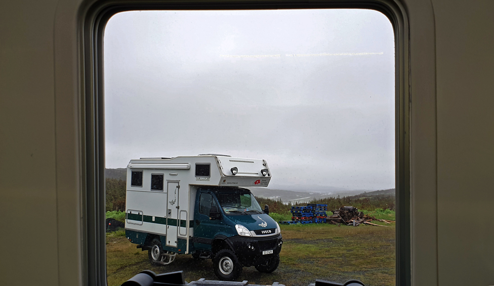 In L'Anse aux Meadows begegnen wir Yvonne, eine ältereReisende, die bereits seit 6 Jahren von Südamerika her mit ihrem Toyota unterwegs ist und nun bald wieder in die Schweiz fährt, und treffen auch Sibylle und Hermann mit Shell und ihrem D-Hai wieder, mit denen wir uns auf einem «wilden Stellplatz» verabreden und einen gemütlichen Abend verbringen, während es draussen regnet, stürmt und nebelt.