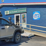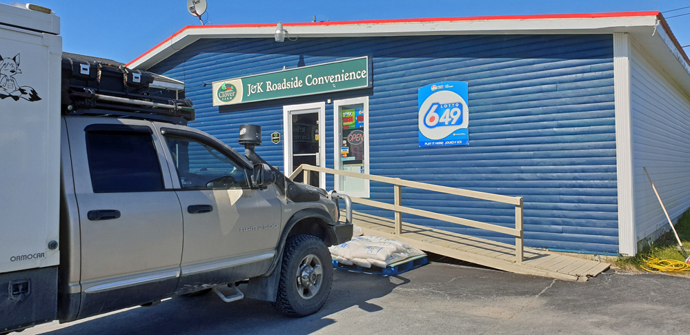 Während des Abendessens hören wir plötzlich ein «Pfffffffft» und das Auto beginnt sich zu neigen: an einem Vorderreifen ist ein Ventil geplatzt… Ozy hat keine Lust, das Reserverad zu montieren. Stattdessen dichtet er mit Hilfe einer kleinen Schlauchschelle das Ventil so weit ab, dass wir am nächsten Tag die 40 km nach Deer Lake zu Simmons Tire & Wheels fahren können, wo das Ventil ersetzt wird. Das Personal ist speditiv und freundlich und zu den vier gekauften Ersatzventilen bekommen wir gleich noch eine ganze Handvoll obendrauf.