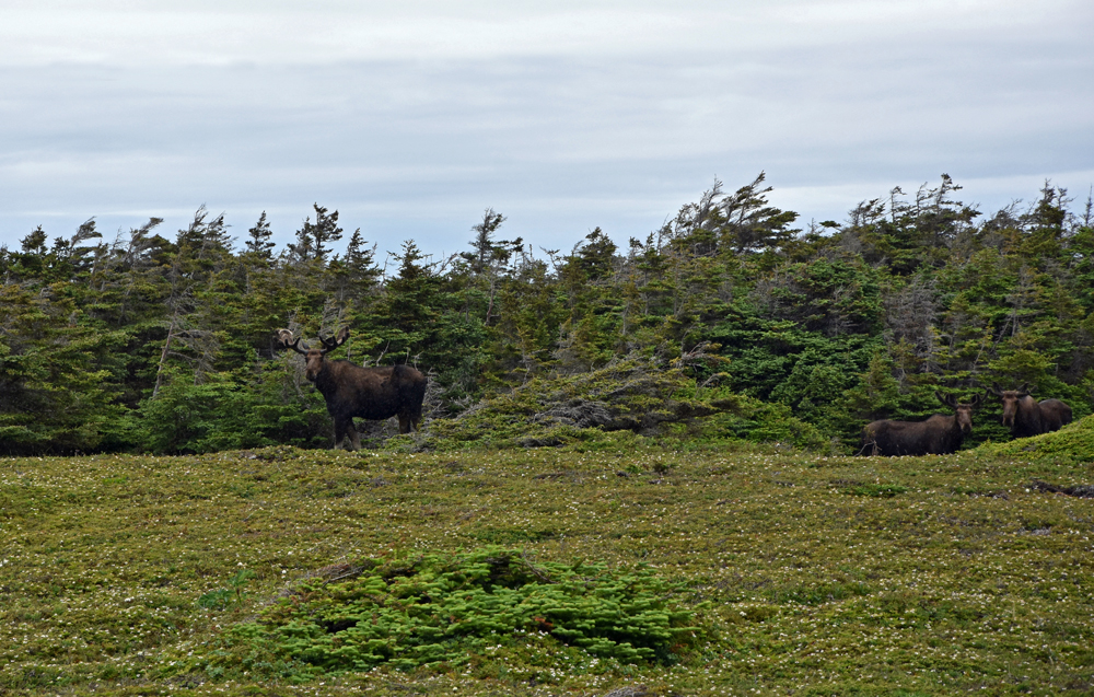 Wir können auf der Landzunge auch eine ganze Gruppe von Elchen beobachten und erhaschen gerade noch einen Blick auf zwei Karibus.