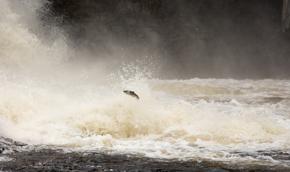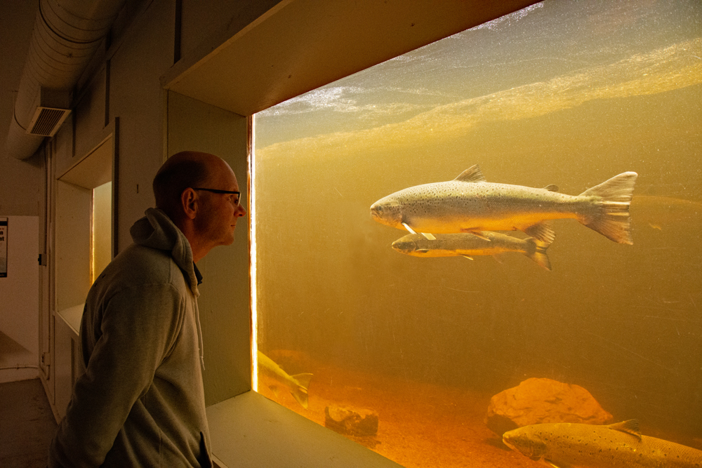 Als Highlight können wir den riesigen Lachsen nicht nur beim Springen zusehen (einige brauchen ein paar Anläufe am Wasserfall, bis sie den Eingang zur Lachstreppe finden), sondern ihnen sogar Aug’ in Aug’ gegenüberstehen! - In der Lachstreppe wurden Fenster eingerichtet und in einem separaten Raum zählen und beschreiben Studenten jeden einzelnen Lachs, der durchschwimmt.