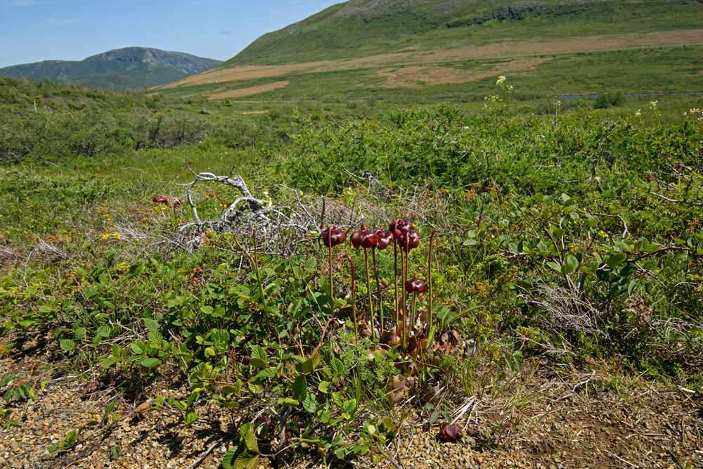 Im Juli blühen sehr viele Blumen, unter anderem die «Blue Flag», eine blau-violette Iris, verschiedenfarbige Lupinen und die Kannenblume, Neufundlands Nationalblume (eine fleischfressende Pflanze, die offenbar auch vor Fröschen nicht zurückschreckt). Es gibt zahlreiche essbare Beeren, wovon bis zu unserer Abreise nur die Moltebeere – meine Lieblingsbeere – an der Südküste gerade so reif geworden ist.