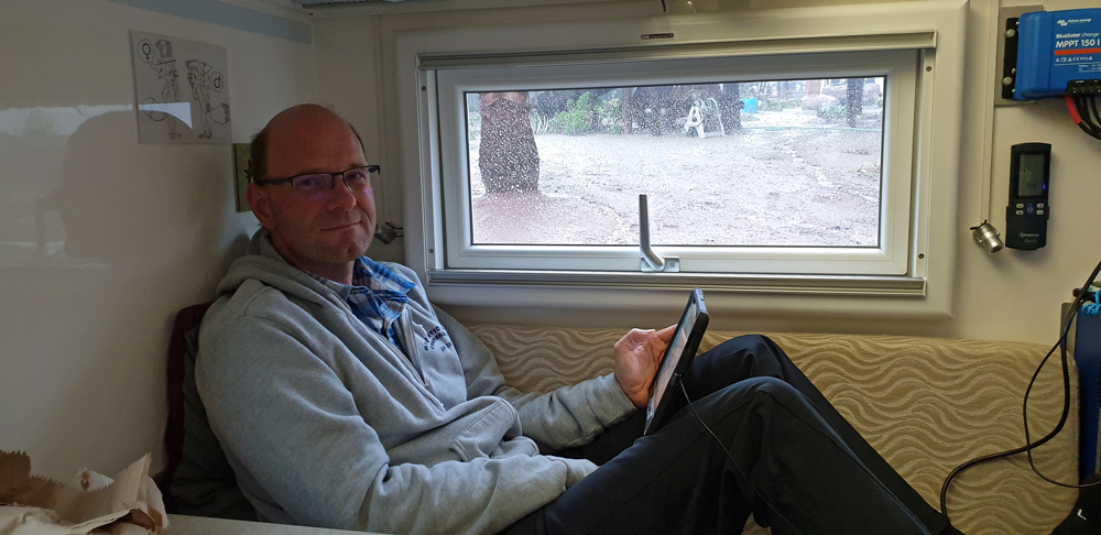 Das Wetter war die letzten zwei Wochen sehr durchzogen. Nach der ausgedehnten Nebelperiode ist es noch kälter geworden (in der Nacht einstellig und auch tagsüber manchmal nur im tieferen zweistelligen Bereich). Dazu hat es nun mehrere Male teils sehr heftig geregnet und gestürmt, wodurch es auch zu Strom- und Telekommunikations-Unterbrüchen kam. Stefanie und Lukas konnten sich zum Glück mitsamt dem Zelt ins feste Häuschen zurückziehen und dort campen.