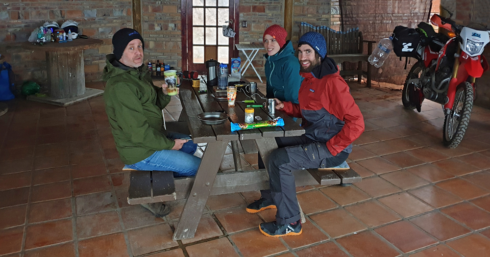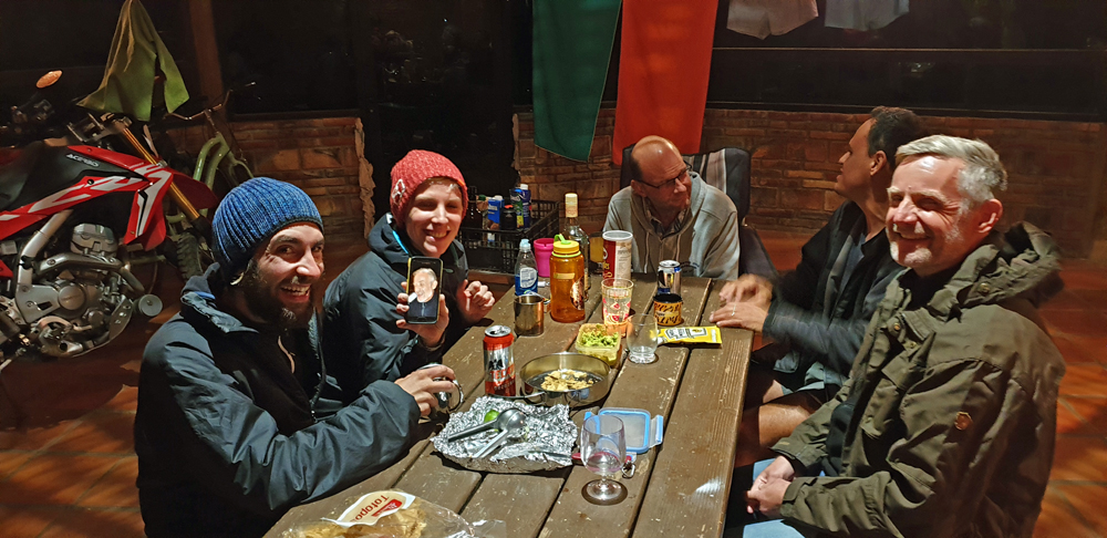 Die „Campo 7-Bande“ mit Tati und Vagner und unserem Schiffskollegen und Landy-Fahrer Rüdiger (umbenannt in Rodrigo) ist nach der Abfahrt von Nadine, Marcel und ihren drei Buben (Kleines Haus, Grosser Garten) um die StrayMotoCats Stefanie und Lukas, zwei deutsche Motorradfahrer, ergänzt worden. Wir verbringen schöne Stunden mit unseren Reisegefährten aus Brasilien und Deutschland, mit denen wir Reiseerlebnisse austauschen, über Politik und die Welt diskutieren und zwischendurch immer wieder mal mit ein paar Gläsern Tequila feiern. Das Einkaufen und Wäsche-zum-Waschen-Bringen wird aufgeteilt, so dass jeweils nur eine Partei fährt und den anderen das Gewünschte mitbringt.