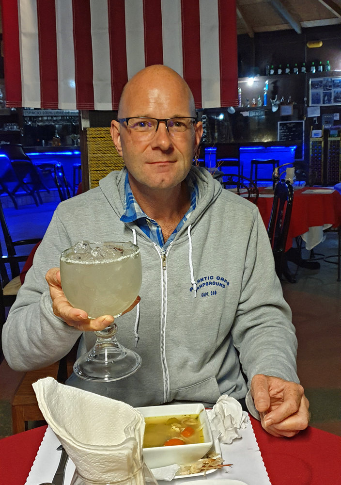 Am 24. habe ich den «Morelli», weil ich die Weihnachtsfeier im Familienkreis vermisse, am Heiligabend gehen Ozy und ich dann aber nach Loreto, wo wir die Weihnachtsbeleuchtung bewundern und noch einen Teil der (oder einer) Weihnachtsmesse mitbekommen. Am 1. Weihnachtstag gibt es einen feinen Brunch in der Palapa (hier eine Art Pavillion), zu dem jeder etwas Selbstgemachtes, oft eine Spezialität aus seiner Region, mitbringt. Und am Stefanstag gehen wir zur Feier des Tages wieder mal essen. Im «Santo Cielo» speisen wir wirklich wie im 7. Himmel und geniessen die schöne Stimmung im Gartenrestaurant (es gibt übrigens nur einen Garten, keine Innenräume!).