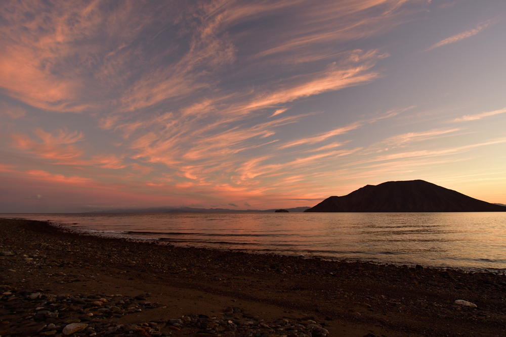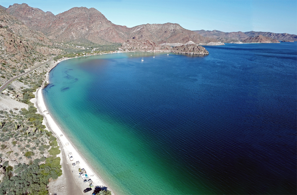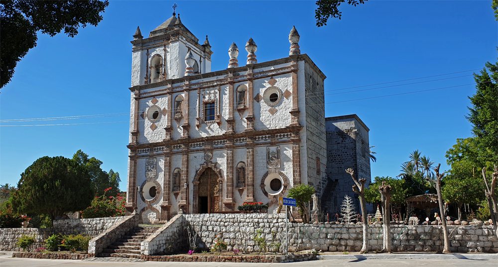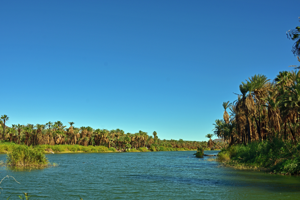 Von Guerrero Negro führt uns die MEX-1 zunächst fast schnurgerade durch die Vizcaíno Wüste, bevor sie in die San Francisco Berge steigt. Dort besuchen wir die wunderschöne, aus Lavasteinen gebaute Mission von San Ignacio, die in einer Dattelpalmen-Oase liegt. Weiter geht’s durch das Gebirge, vorbei an Vulkanen und dann auf der «Cuesta del Infierno», dem «Höllenabhang» steil und kurvig an die Küste. Das Meer ist unglaublich blau! Wir passieren einige Bergbauunternehmungen und nach Mulegé, das mit seinen vielen Palmen wieder wie eine Oase wirkt, beginnen die weissen Sandbuchten entlang der flachen Bahía Concepción.