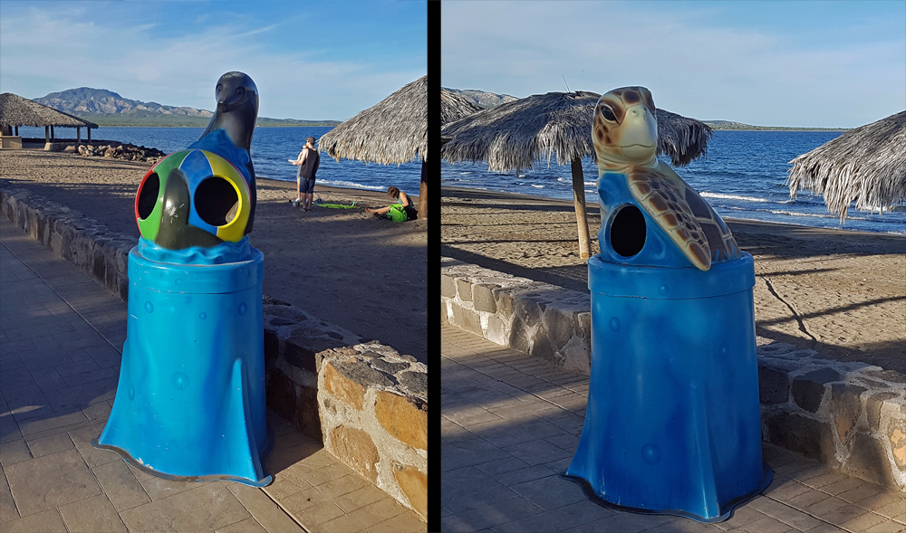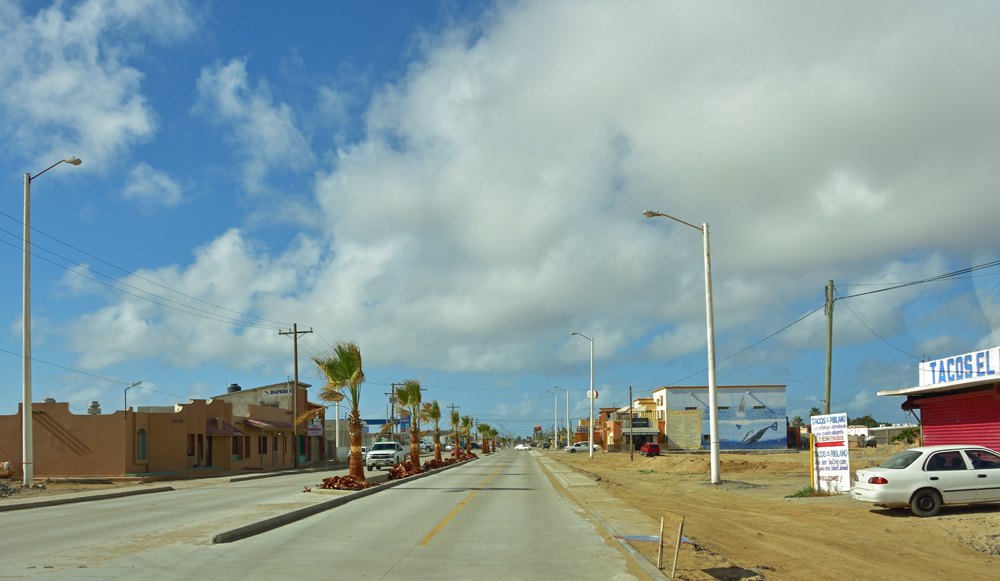 Wir sind immer noch und immer wieder erschüttert über den Unterschied zwischen den USA und Mexiko. Wohl nirgends in Europa ist die Diskrepanz in den Lebensumständen so gross. Direkt hinter der Grenze fing es an und gegen die Central Baja akzentuiert sich der Eindruck noch. Vom Erscheinungsbild der Orte haben wir das Gefühl, in einem Drittwelt-Land zu sei. Ausser der MEX-1, der Hauptstrasse, die sich im Zickzack durch die ganze Baja zieht, sind – sogar in den Städtchen – nur die wenigsten Strassen überhaupt geteert. Es gibt zwar manchmal Trottoirs, aber die sind in einem so schlechten Zustand, dass es sicherer ist, auf der Strasse zu gehen, will man nicht unvermittelt in ein Loch treten. Oder in eine «Tellermine». – Die Strassen sind voll von Hunden, die bevorzugt die Gehsteige «dekorieren». Viele Strassenhunde, einige wohl auch freilaufende Haushunde. Abfall findet sich fast überall, entsorgt wird in mehr oder weniger offiziellen «Landfills», meist direkt neben der Strasse. (Dafür gibt es in den Läden aber keine Plastik-Einkaufstüten mehr und in den Bars – auf Nachfrage – biologisch abbaubare Strohhalme). Die Abwassersysteme sind viel zu klein und vertragen kein Toilettenpapier; dieses wird einfach jeweils im bereitgestellten Eimer neben dem WC deponiert. Für Wasser gibt es oft gar keine Leitungen, weshalb das Brauchwasser – wie auch im Campo 7 – oft mit Tanklastwagen gebracht und das Trinkwasser an einer der zahlreichen «Agua purificado-Fabriklein» bezogen wird, die es in praktisch jedem etwas grösseren Ort gibt. Gemüse und Früchte und auch andere Waren werden in die Läden ein oder mit Glück zweimal die Woche geliefert. Es ist da, was (noch) da ist. In Ensenada gab es sehr viel Import aus den USA, d.h. mehr oder weniger «unverrottbare Ware», vielleicht, weil der Transport vom Mainland Mexiko noch teurer ist? Weiter südlich gibt es einheimische Ware, die aber nach zwei, drei Tagen verdorben ist (wie bei uns früher, als Früchte und Gemüse noch Geschmack hatten…). Viele Häuser sind in einem schlechten Zustand und besonders auffällig sind auch die vielen «Bauruinen». Theorien dazu gibt es einige, von weniger Steuern für ein «unfertiges» Gebäude bis zum «Etappenbau» (d.h. wenn wieder genug Geld da ist, wird weitergearbeitet). Die Militärposten, an denen der Verkehr kontrolliert wird, erinnern etwas an den Nahen Osten und geben uns ein eher mulmiges Gefühl. (Obwohl sie ja für die Sicherheit sorgen. Die Soldaten waren auch immer höflich und kortekt).