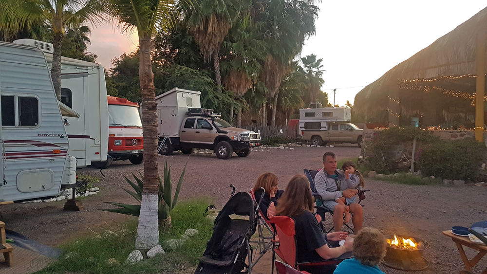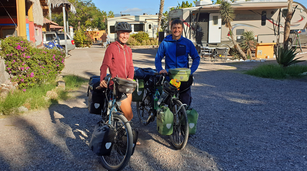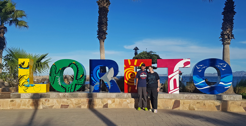 Trotz allem zieht es uns dann auch wieder in die Zivilisation und wir schlagen unser Lager auf dem hübschen Rivera del Mar RV Park in Loreto auf. Es ist zwar nicht der ruhigste Platz, aber hier haben wir wieder Netz für unser Google Fi. Das Netz ist wichtig, denn wir wollen an Weihnachten mit unseren Lieben zuhause Kontakt aufnehmen. Auf dem Platz treffen wir viele nette Kanadier und Amerikaner, die teils schon seit mehreren Jahren aus dem Norden hierher kommen; unter anderem Mary, die uns in ihren «Teardrop Trailer» hineingucken lässt und Harvey und Pam, die «official Ambassadors» vom RV Park, die immer ein freundliches Wort übrig haben und uns einen wunderschönen, von Harvey aus Wachholderholz geschnitzten «Spreader» (Buttermesser) zu Weihnachten schenken. Wir treffen auch Schweizer: Neben uns machen es sich Sandra und Reto mit ihrem gemütlich umgebauten Mercedes-Feuerwehrauto bequem und für einige Tage machen Linda und Dominik hier einen Zwischenhalt, die mit ihren Fahrrädern schon seit über einem Jahr in Nord- und Südamerika unterwegs sind. Es wird gebacken und gekocht (nochmals vielen Dank, Sandra und Reto, fürs Fertigbacken meines Zopf-Experiments in Eurem Backofen!) und geschwatzt und diskutiert.