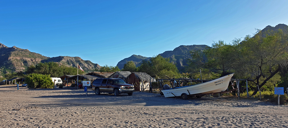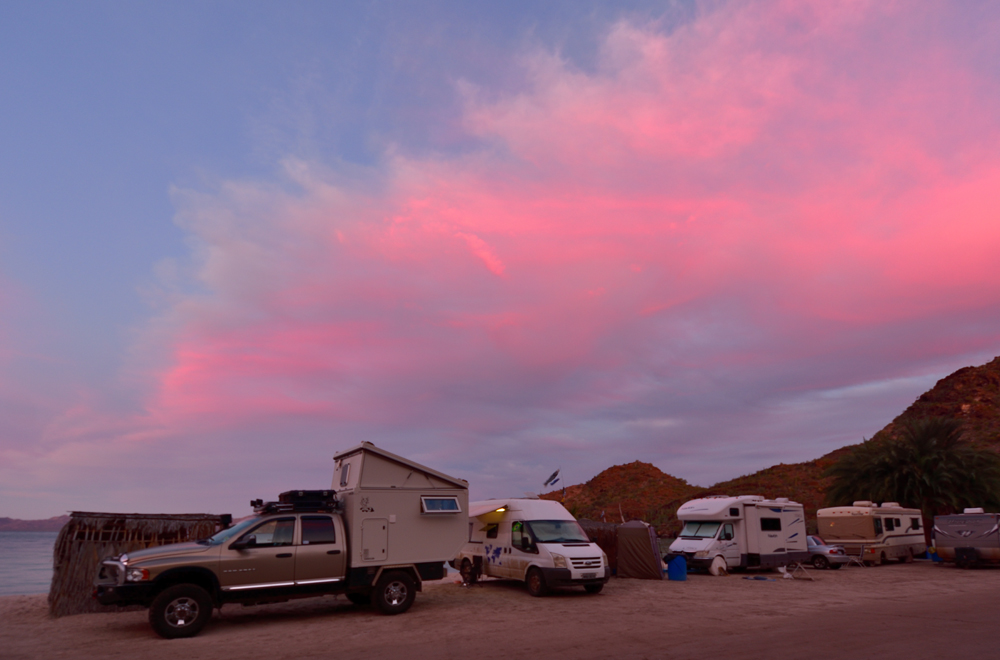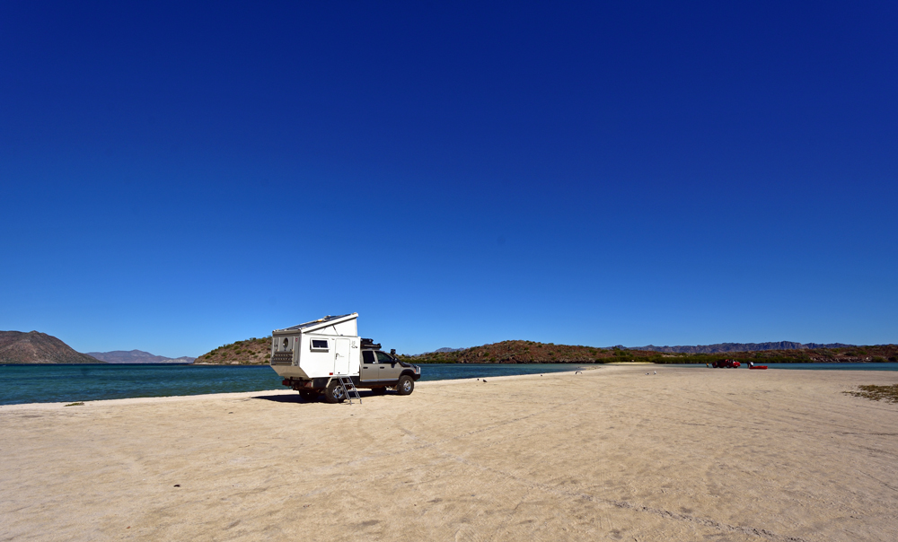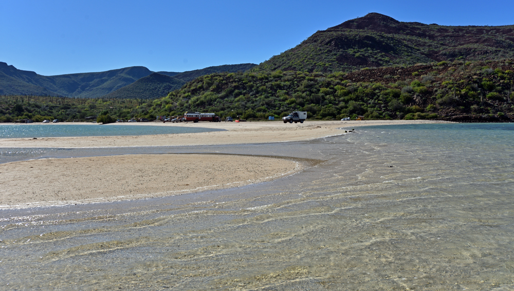 Nachdem wir Francisco an seinem Bestimmungsort Loreto abgeladen haben, fahren wir gleich weiter zur Bahía de Concepción, wo wir von der Strasse aus das Feuerwehrauto von Sandra und Reto auf der „Sandbar“ erspähen. – Wir freuen uns über das Wiedersehen und stellen uns gleich für eine Nacht dazu.