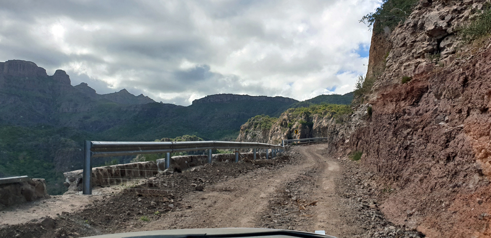 Ozy meistert die haarigeren Stellen der 41 km langen Stichstrasse als professioneller Chauffeur ganz unaufgeregt, aber die Strecke ist definitiv nichts für Menschen mit Höhenangst… – Dafür bietet sie sehr schöne Blicke auf die Küste.