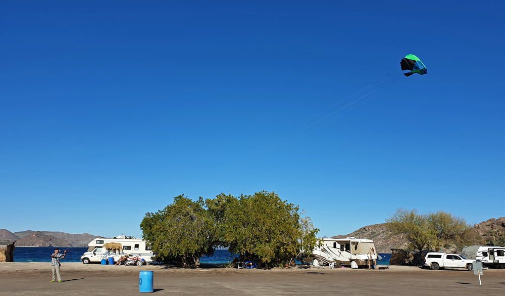 Am Strand begegnen wir erneut France mit ihrem Promaster-Van, die wir bereits in Ensenada und Loreto getroffen hatten. Im Gegensatz zu ihr bleiben wir aber dann nur eine Nacht, weil es uns zu windig und zu kalt ist.