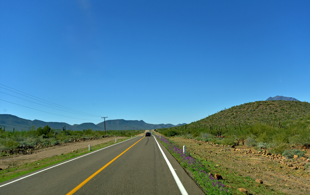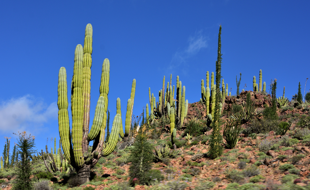 Es geht wieder 17 km zurück auf die Hauptstrasse und dann – wieder vorbei an zahlreichen Gewächshäusern und Feldern und durch viele kleinere Orte – die restlichen 340 km bis zum Campo 7 bei La Bufadora.