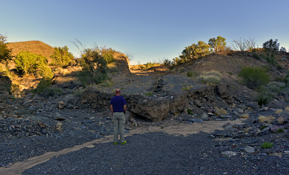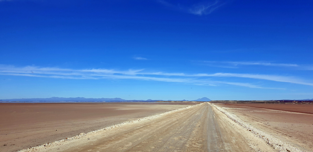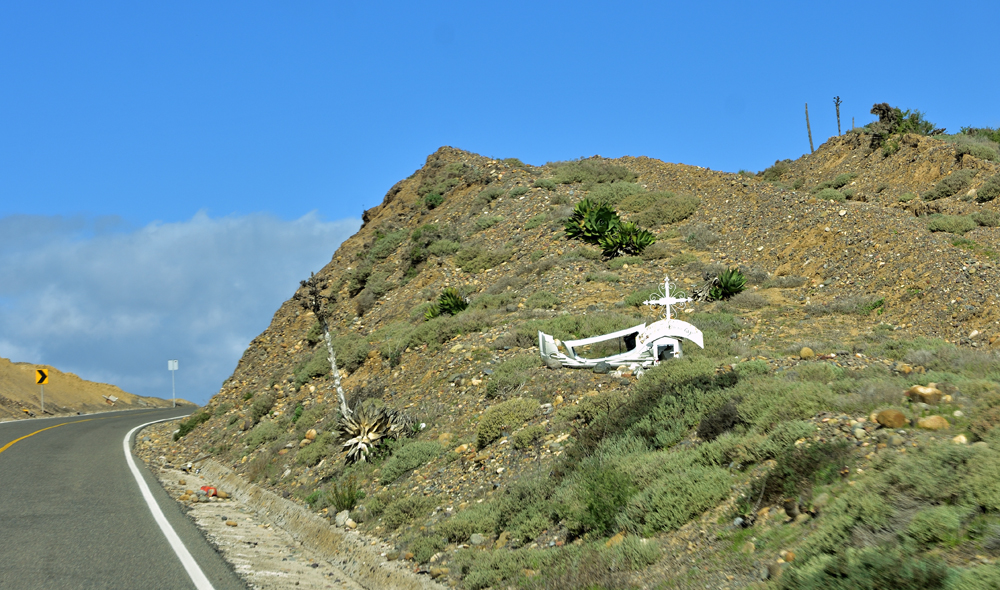 Kurz hinter Guerrero Negro passieren wir wieder die Grenze zu Baja California [Nord]. Von der Hauptstrasse folgen wir etwas später dem Wegweiser nach El Marmol, einer fast komplett verschwundenen Siedlung zum ehemals grössten Onyxmarmor-Steinbruch der Welt (der petrographisch weder etwas mit Onyx noch mit Marmor zu tun hat…). Vier Kilometer vor dem Steinbruch ist die Strasse jedoch weggespült, weshalb wir umkehren und eine wunderbar ruhige Nacht in der Wüste verbringen (übrigens die erste Nacht ohne laute Musik und/oder Hundegebell seit laaaaanger Zeit…).