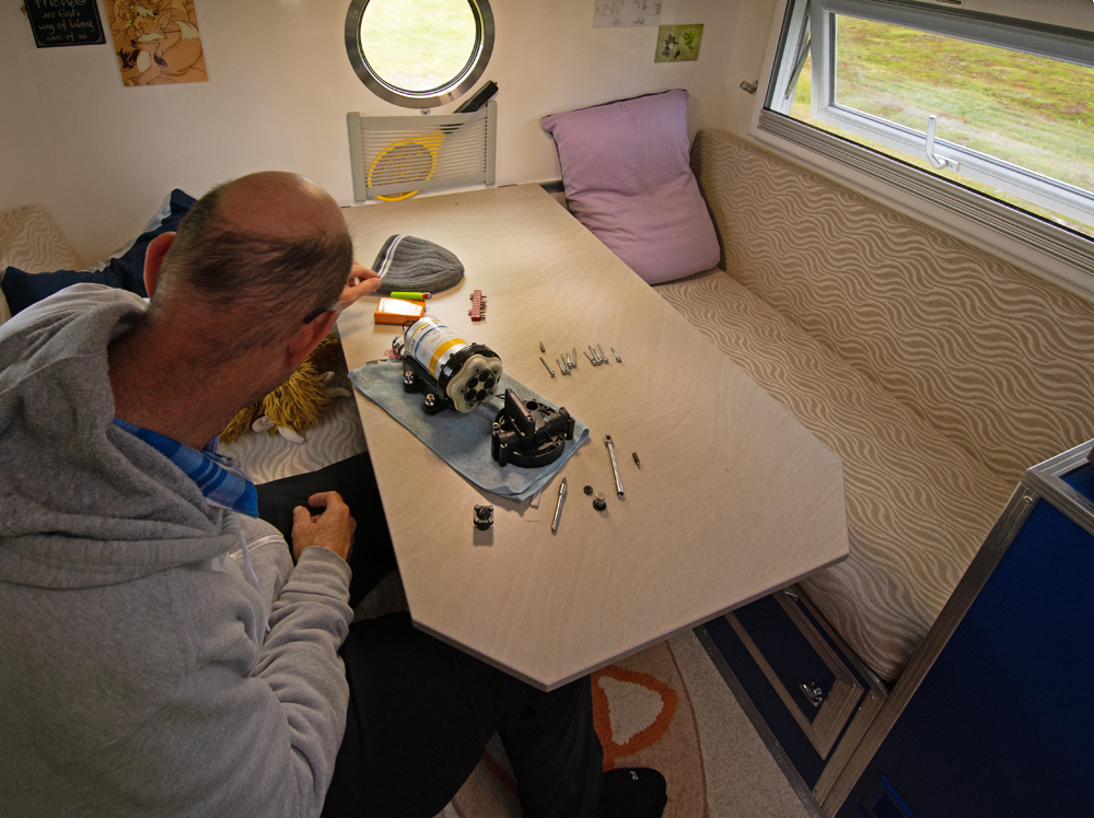Geärgert haben uns der Sensor in unserem Dieselherd, der mitten in Québec den Dienst quittiert hat (immerhin haben wir deshalb nun auch noch zwei kleine Gasbrenner), die leckende Wasserpumpe und einige – zum Glück nicht gravierende – Mängel an der Kabine selbst.