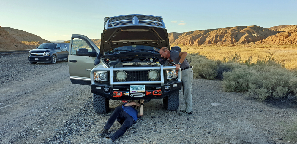 Unser Dodge RAM ist mit über 310’000 km ja nicht mehr gerade der Jüngste, trotzdem gab es recht wenig Reparaturen und gottseidank nichts, was Ozy nicht selbst reparieren konnte. Ein grösserer Umbau war ganz zum Schluss noch das – von einer spezialisierten Garage ausgeführte – Anpassen der Achsübersetzung an die grösseren Reifen; es wäre nicht uuunbedingt nötig gewesen, hat aber die Fahr- und insbesondere Schalteigenschaften unseres RAM wieder spürbar verbessert.