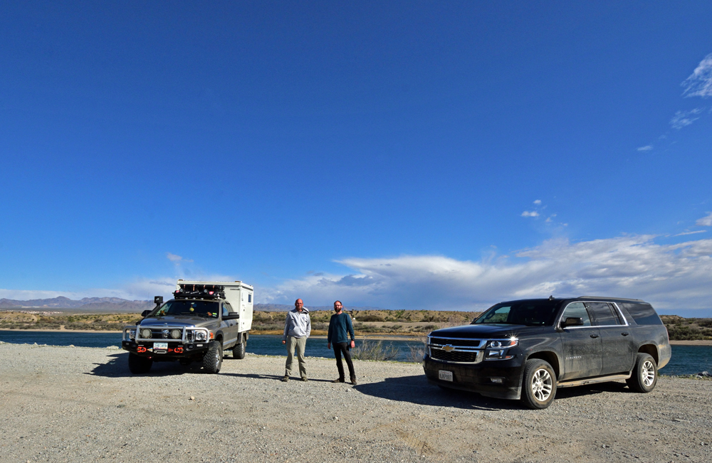 Es beginnt schon auf der Überfahrt Und manchmal begegnet man sich wieder Sibylles und Hermanns „D-Hai“ Jeannine und Jerrys Óneiro und unser Diheime Ozy und Robert geniessen die Aussicht vom Campo 7 Legendäre Abschiedsparty im Campo 7 mit Lukas, Stefanie, Tati, Vagner und Rüdrigo Fröhliches Wiedersehen mit Stefanie und Lukas Erneuter Abschied von Tati, Vagner, Akira und Miyuki RV Park in Loreto mit Harveys und Pats Zuhause Reto, Sandra und Diego in Loreto Schweizer Camp im Saline Valley mit Martin, Valentina, Marion und Fabian Overlander-Treffen in der Wüste: Fabian und Marion, wir, Claudia und Thomas (Foto: Fabian Kuenzle) Unsere lieben Freunde Sandy und Mike (beim Fondue-Probieren…) Die Jungs spielen einfach gern mit Autos und Maschinen… 😉 Wayne und sein Sohn Thomas bringen uns die Geschichte Staten Islands näher Picknick mit Vicki und Steven am Strand Ganz viele TDR-Freunde Noch mehr TDR-Freunde Wir geniessen die Reise durch Utah und Colorado mit Franz Ozy und Gino nach Befahren der Mojave Road