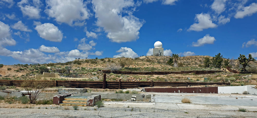 Von unserem Lagerplatz aus hatten wir die ganze Zeit die weisse Kugel der Boron FAA Radarstation vor Augen gehabt. Wir haben inzwischen herausgefunden, dass unterhalb der Station ein Militärstützpunkt lag, der später in ein Minimalsicherheits-Gefängnis («Club Fed») umgewandelt worden ist. Wir sind neugierig und statten der im Jahr 2000 aufgegebenen Anlage einen Besuch ab. Der Zutritt wäre eigentlich streng verboten, aber anhand der weit offen stehenden Tore und den Zeugen allgemeinen Verfalls dürfte das Verbot schon länger nicht mehr durchgesetzt werden…