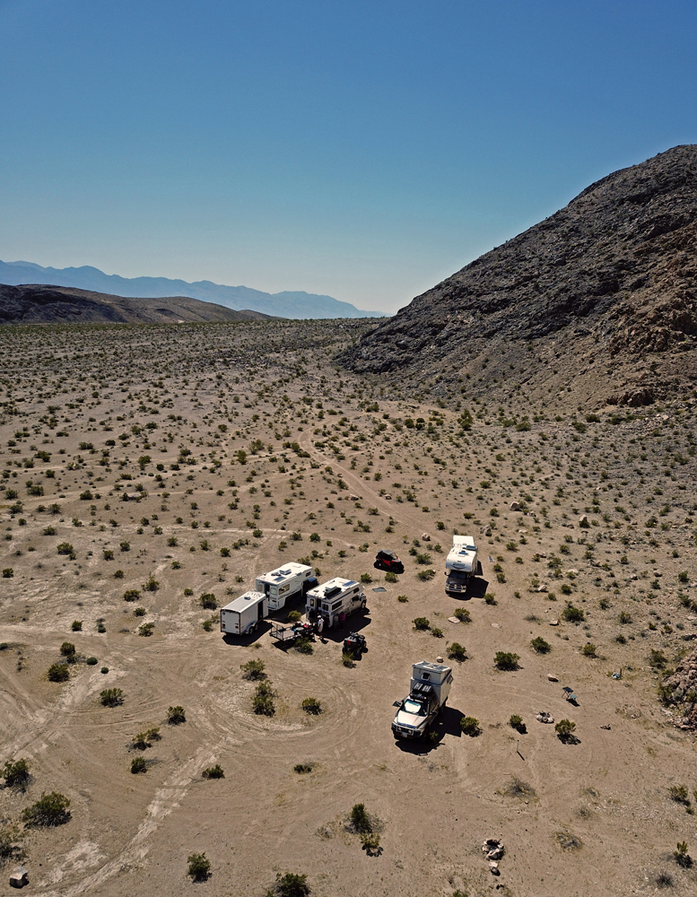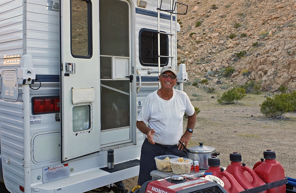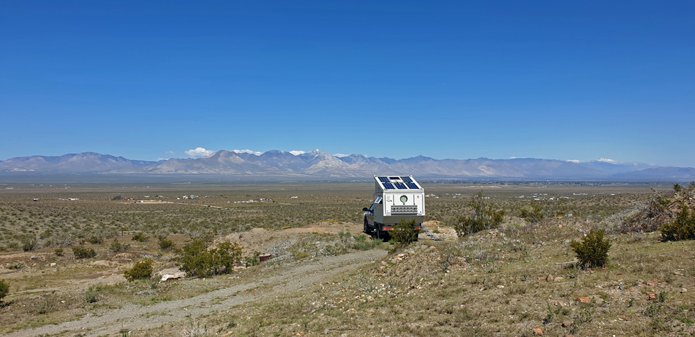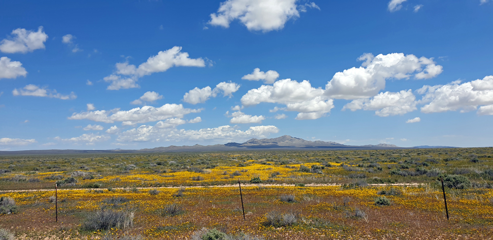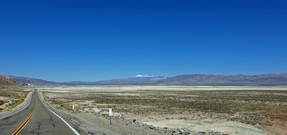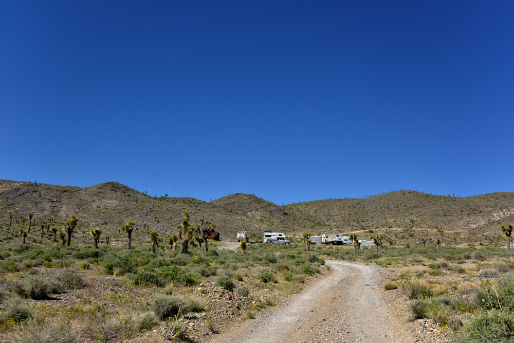 Am 13. April können wir uns endlich auf den Weg Richtung Panamint Valley machen, wo wir uns am 15. April mit unserem Freund Don verabredet haben. Er verbringt jedes Jahr zusammen mit seinen Freunden im Frühling einige Wochen in Süd-Nevada und hatte uns eingeladen, ihn bei Ballarat im Panamint Valley zu treffen. Wegen oder – in dem Fall – dank des Coronavirus und unseren deswegen verhinderten Heimreiseplänen können wir seiner lieben Einladung nachkommen. Wir freuen uns sehr darauf, ihn zu treffen, haben wir uns doch seit 2015, als wir uns kennengelernt hatten, nicht mehr gesehen.