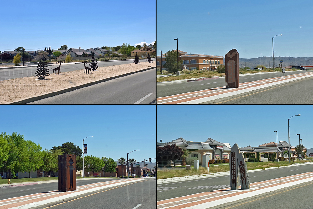 Ridgecrest gefällt mir besonders gut, da der Ort auf die «grösste bekannte Konzentration an Petroglyphen der Westlichen Hemisphäre» Bezug nimmt und über und über mit entsprechenden Objekten dekoriert ist (die Petroglyphen liegen auf dem Gebiet der China Lake Naval Air Weapons Station und können nur mit  vom Maturango Museum aus organisierter Führung besichtigt werden – wenn es keinen Virus gibt…).