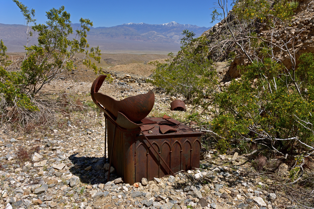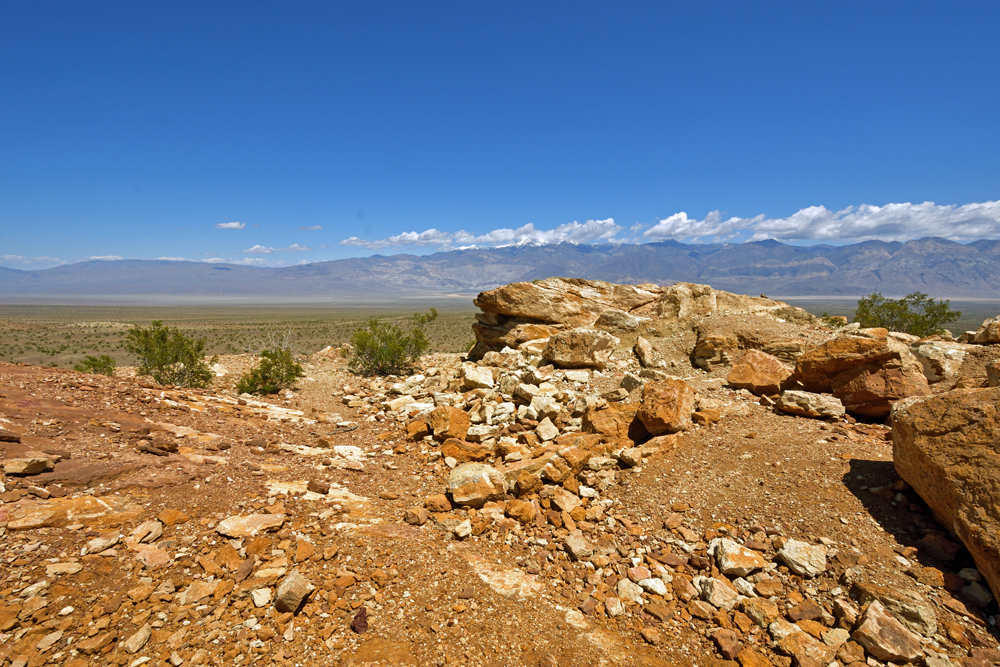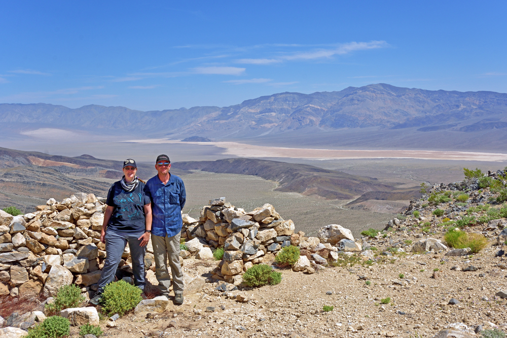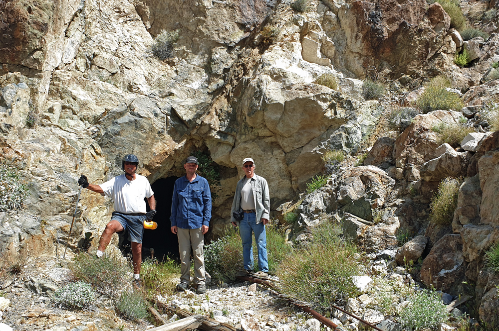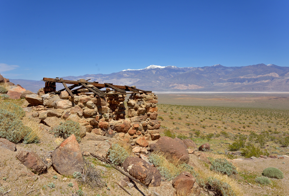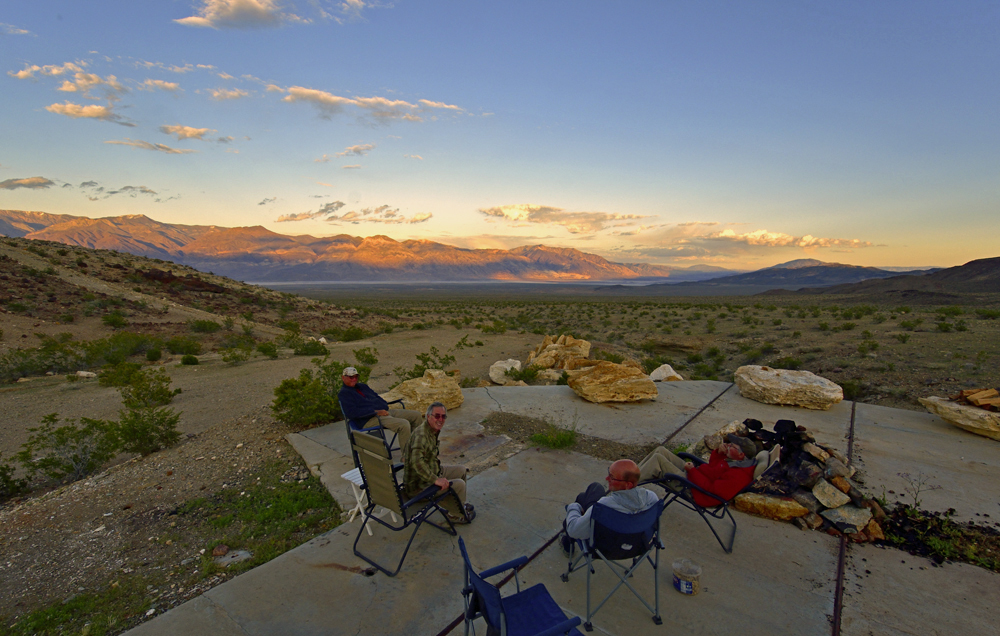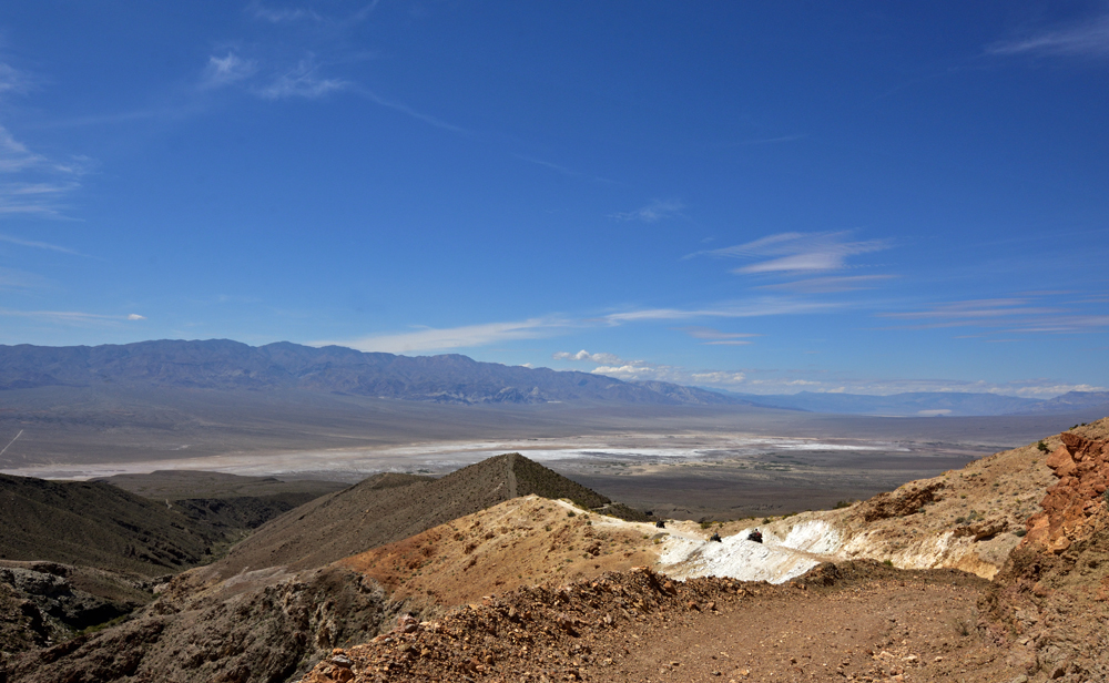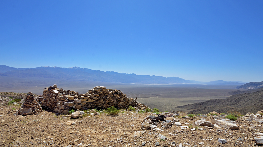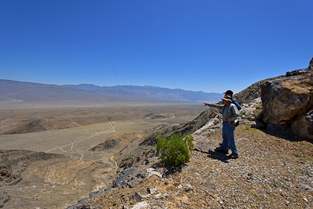 Don, Bill und Bob zeigen uns den Standort der ehemaligen Minenstadt Lookout City mit herrlichem Ausblick über das Panamint Valley (nomen est omen 😉 ). Hier sind noch einige wenige Ruinen, Hinterlassenschaften und ein kurzer Stollen der 1875 eingerichteten und wenige Jahre darauf wieder eingegangenen Minenstadt zu sehen; den Spuren nach wurde hier vor nicht allzu langer Zeit wieder prospektiert.