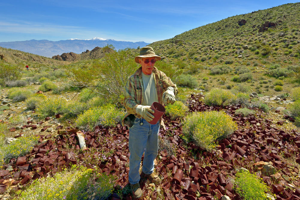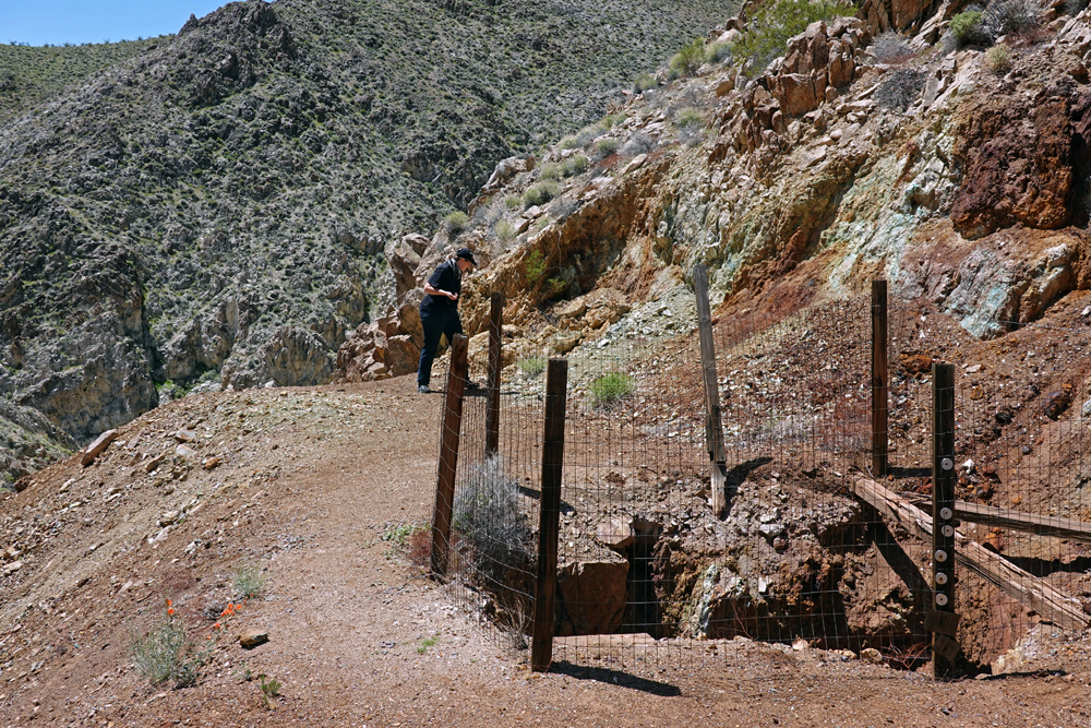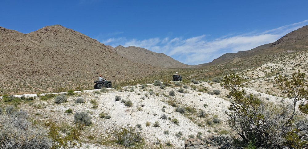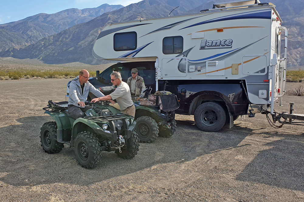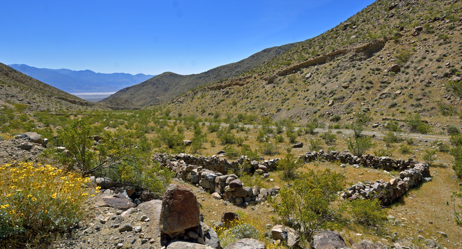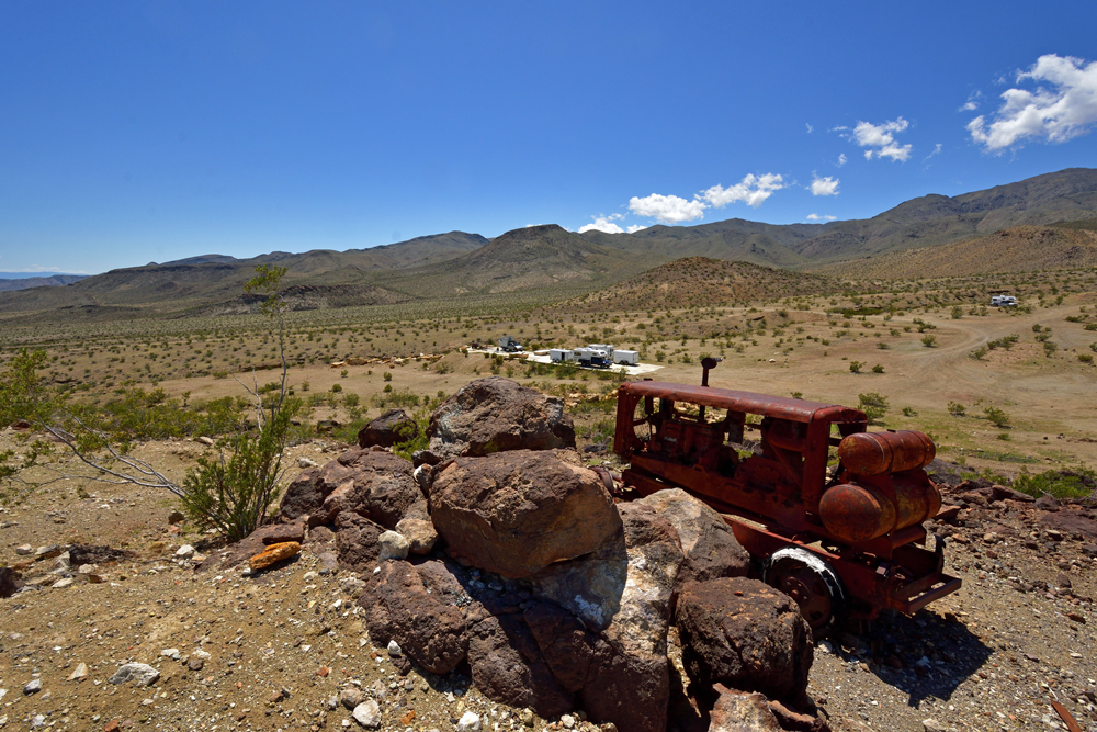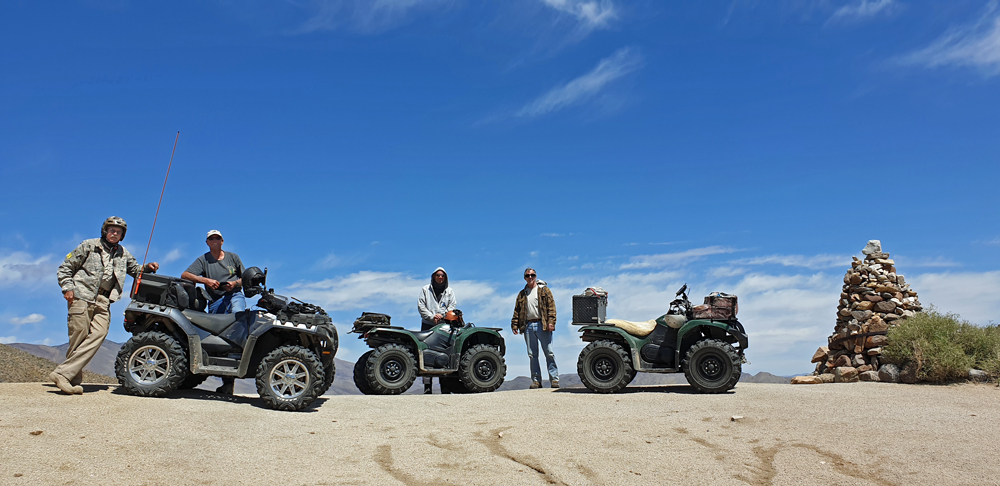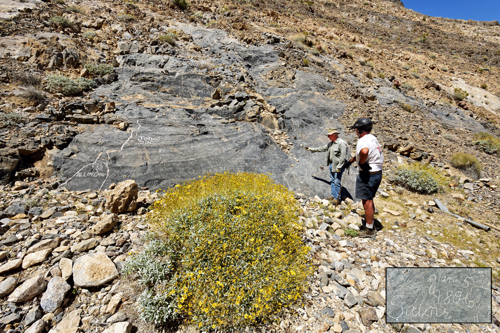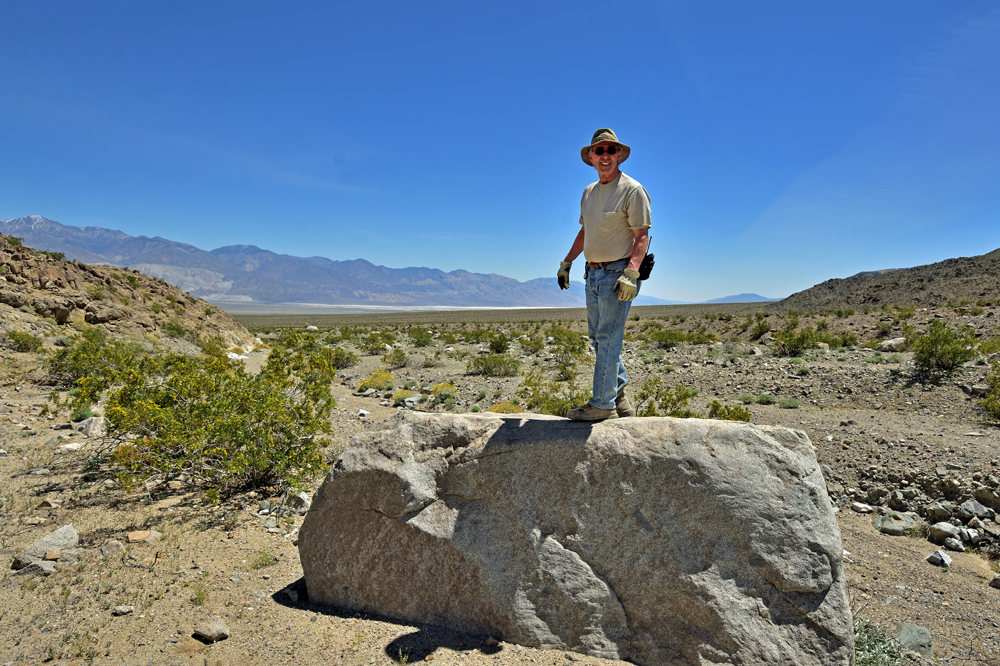 Don, Bill und Bob zeigen uns den Standort der ehemaligen Minenstadt Lookout City mit herrlichem Ausblick über das Panamint Valley (nomen est omen 😉 ). Hier sind noch einige wenige Ruinen, Hinterlassenschaften und ein kurzer Stollen der 1875 eingerichteten und wenige Jahre darauf wieder eingegangenen Minenstadt zu sehen; den Spuren nach wurde hier vor nicht allzu langer Zeit wieder prospektiert.