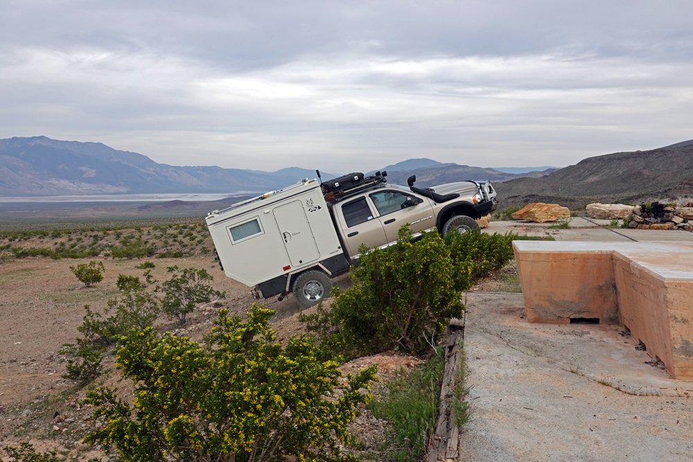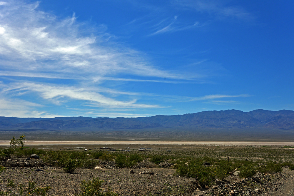 Von diesem, etwas kühleren Standort aus machen wir wieder Ausflüge in die Umgebung, diesmal unter anderem zur hochgelegenen Cerro Gordo Mine mit Geisterstadt und Blick aufs Owens Valley und zu den Überresten der Belmont Silbermine, von wo wir einen – sehr sehnsüchtigen – Blick ins Saline Valley und bis zu den Warm Springs werfen können, die leider auch im Nationalpark liegen.