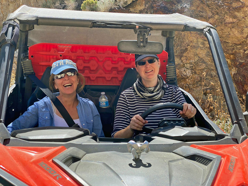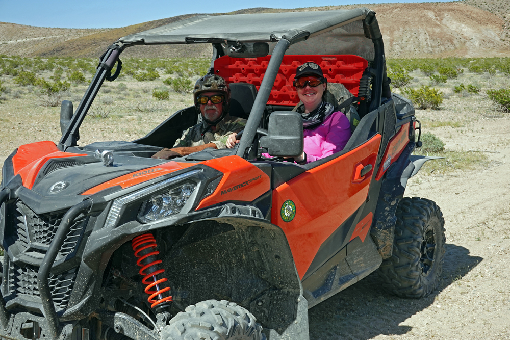 Zu meinem Glück hat Bill hat einen komfortablen Zweiplätzer (sog. «Side-by-Side») mitgebracht und ich darf mit ihm mitfahren (und manchmal sogar selber ans Steuer 😊).