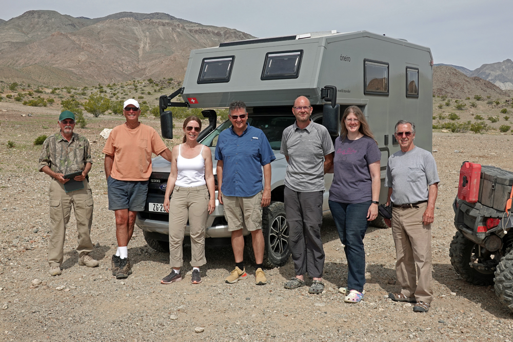 In Ridgecrest treffen wir das Schweizer Reisenden-Paar Jeannine und Jerry, die wir bereits zuhause in der Schweiz kennengelernt und das letzte Mal Anfang August in Nova Scotia getroffen hatten. Wir freuen uns sehr über das Wiedersehen und überreden sie, doch auch mit uns zur Onyx Mine zu kommen. Don, Bill und Bob freuen sich, die beiden kennenzulernen und einmal einen Blick auf einen europäisches Ford Ranger werfen zu können.