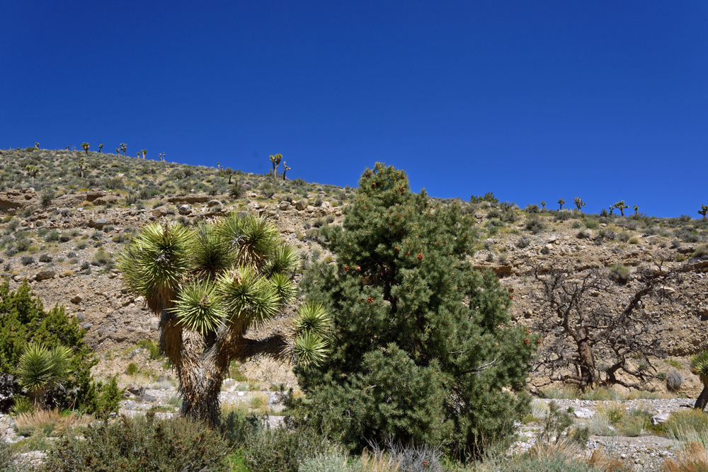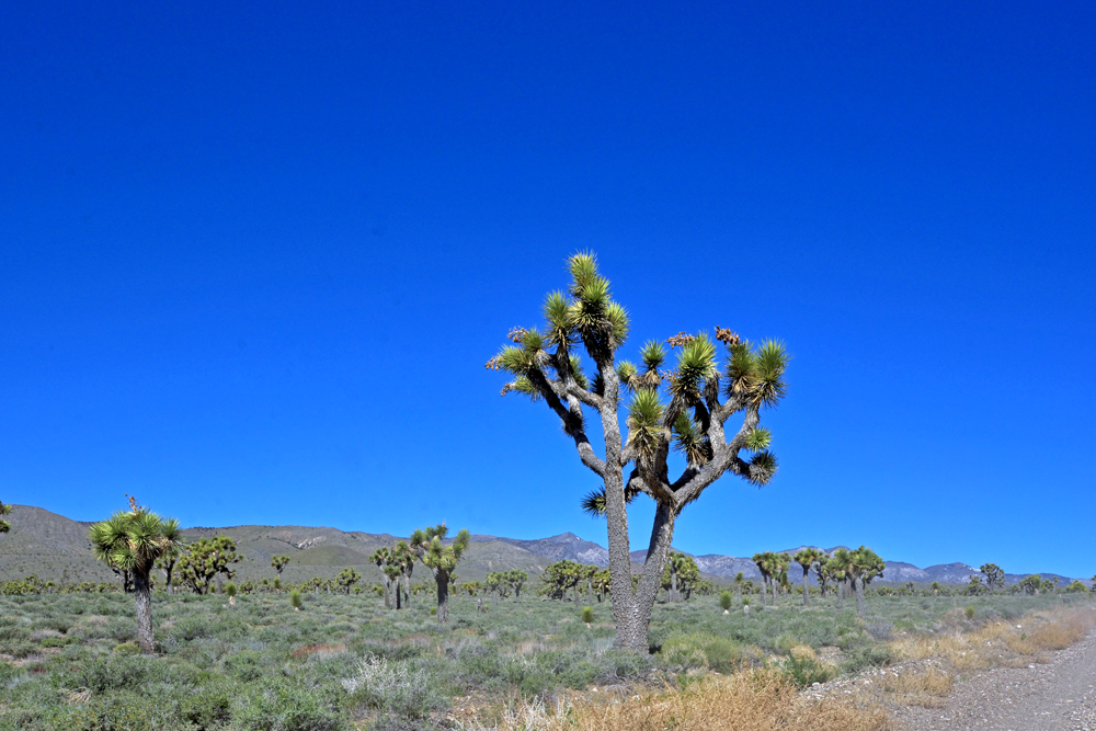 Wir verlassen den schönen Ort auch bald, weil es nun doch langsam auch hier zu heiss wird, und ziehen uns zur höher gelegenen «Boxcar Cabin» in der Nähe der Lee Flat zurück. Eigentlich wollten wir unser Lager im dortigen Yoshua Tree Forest aufschlagen, aber die Lee Flats liegt bereits im Death Valley Nationalpark und der ist im Moment wegen Coronavirus bis auf die Durchgangsstrassen komplett gesperrt (und die Sperrung wird auch streng durchgesetzt, inkl. Bussen…).