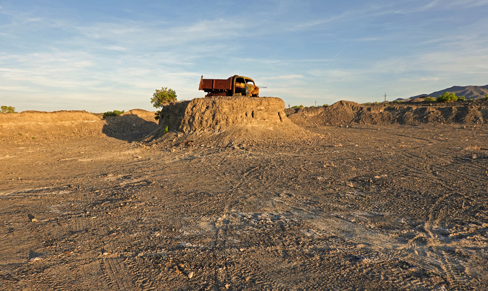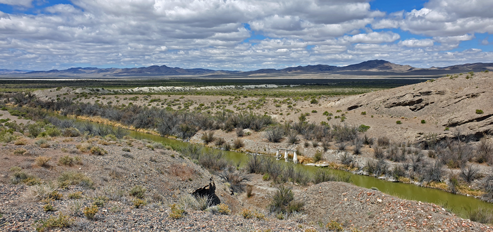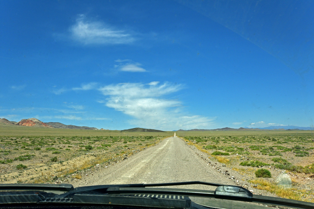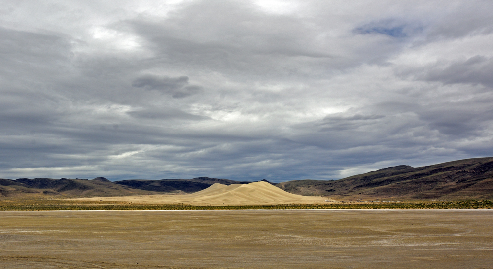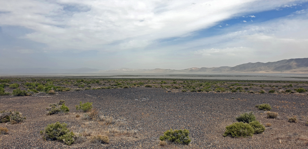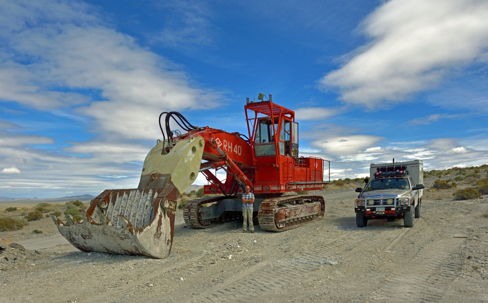 Vorbei an der grossen Magnesiummine in Gabbs, mit «Poser-Pic» vor einem grossen Bagger, der zufällig dort steht, geht es wiederum durch verschiedene Basins und über Bergketten bis zu unserem Ziel: der grossen Senke, die den Humboldt und den Carson Sink beinhaltet.