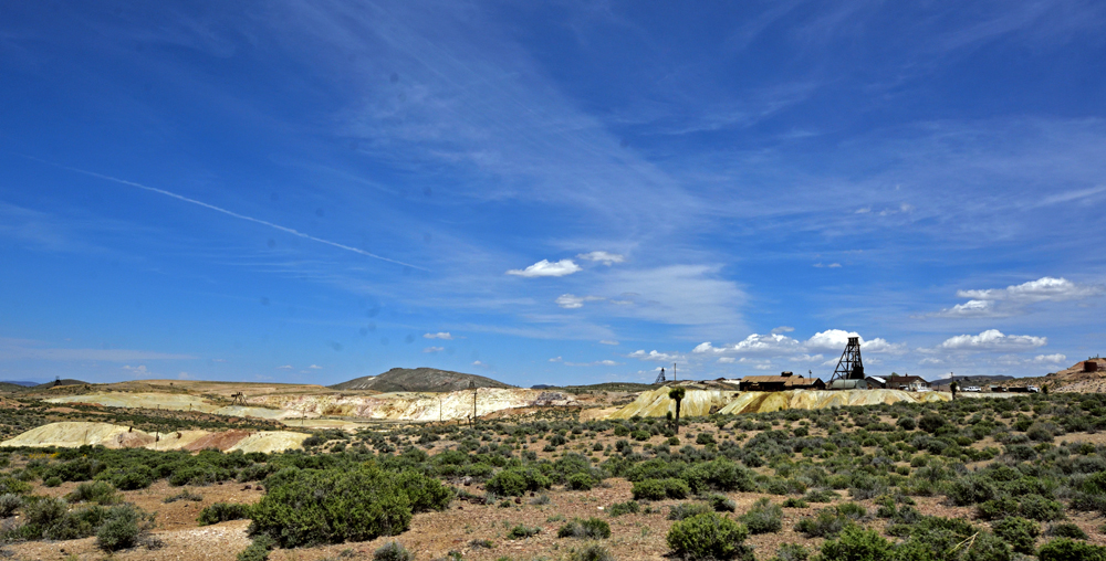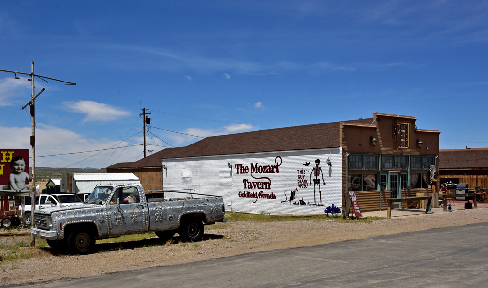 Am nächsten Tag fahren wir ein kleines Stück zurück, um uns Goldfield anzuschauen. Von 1904 bis 1910 war die Goldgräberstadt der grösste Ort von ganz Nevada. Heute scheint uns dieser eher verschlafen wirkende Ort als eine seltsame Mischung von Openair-Ausstellung, teils (über-)restaurierten Gebäuden, Schrottplatz und Kunstgalerie.