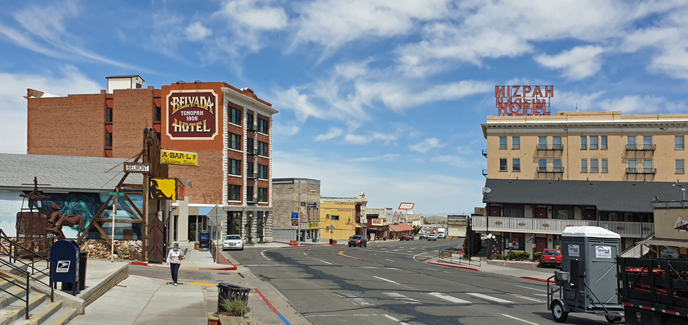 Hawthorne, zu dem wir einen Abstecher machen, erscheint aus der Ferne wie eine Oase; der Weg dorthin führt entlang zahlloser «Erdhügel» des Hawthorne Army Depot (eh. Navy Depot), des „grössten Depots der Welt“. Da es in der ganzen Gegend keine Travel Centers gibt, ergreifen wir die Gelegenheit, in einem RV Park gegen eine Gebühr von je 7.50 $ endlich wieder einmal «richtig» zu duschen.