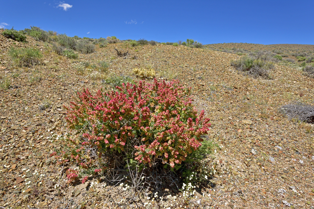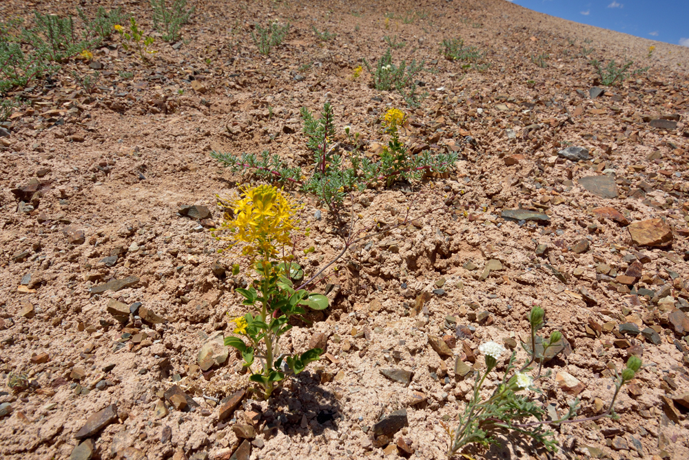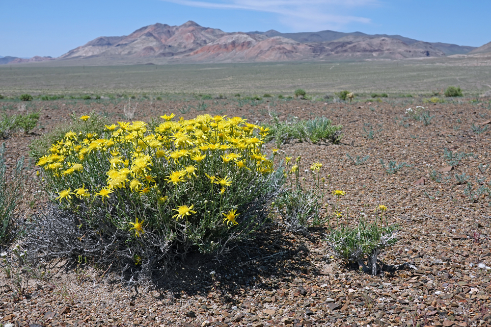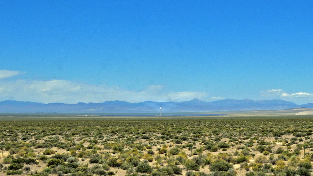 Crescent Dunes Concentrated Solar Power (CSP)-Kraftwerk mit einem zentralen Receiver-Turm Strasse am Rand des Big Smoky Valley Unser Camp in der Nähe der Crow Springs von der einen… …und der anderen Seite Umgenutzter Dampfkessel Zutrauliche Zebra-Tailed Lizard Eh. Perlit-Mine Ozy sammelt „Apache Tears“ Perlit mit „Apache Tear“-Obsidianen Es hat auch andere seltsame Gesteinsformationen… Ebenfalls vulkanischen Ursprungs Kreide-Klippe (eh. Mine?) Dazwischen harte… …und manchmal sehr farbenfrohe Schichten Auch hier ist der Frühling ausgebrochen (Shockley’s goldenhead (Acamptopappus shockleyi)) Winzige Pflänzchen Winged four o’clock (Mirabilis alipes) Spiny hop sage (Grayia spinosa) Blumenwiese in Nevadas Wüste Jackass-clover (wislizenia refracta) Blick auf Crow Springs, im Hintergrund das Big Smoky Valley Farbenfrohe Monte Cristo Range