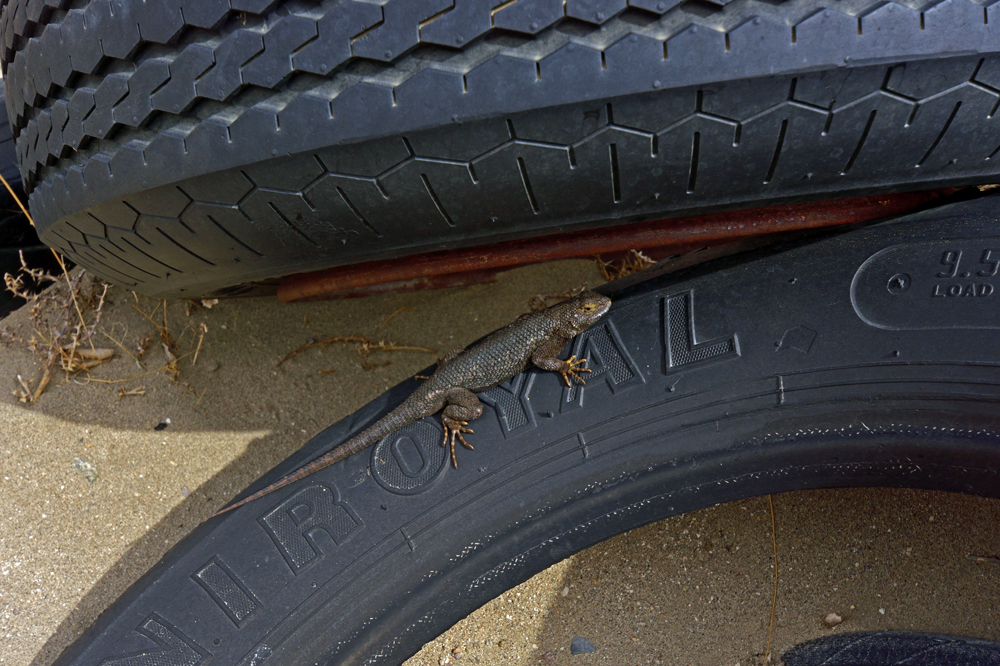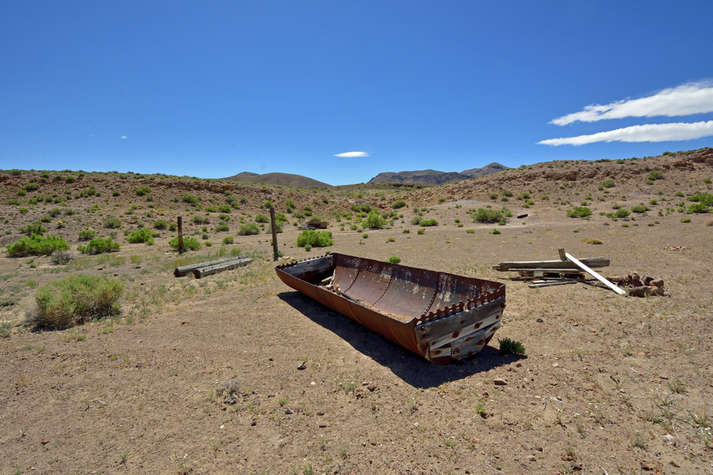 Wir wollen uns für die Nacht im Minengebiet ausserhalb Goldfields hinstellen. Sogleich kommt ein Pickup Truck angefahren – es wird auch hier eine Probegrabung durchgeführt, weshalb wir nicht im näheren Umkreis stehen bleiben dürfen («it’s the law»). Die beiden Arbeiter sind aber unglaublich nett, entschuldigen sich tausend Mal und führen uns zu einer versteckt liegenden, ehemaligen «Schafranch» (ein Korral mit aus alten Felgen gebautem Unterstand), wo wir alle ganz ungestört die Nacht verbringen können. Am Abend kommt der eine Arbeiter sogar nochmals mit seiner Familie vorbei und erkundigt sich, ob alles in Ordnung sei!