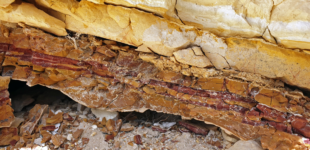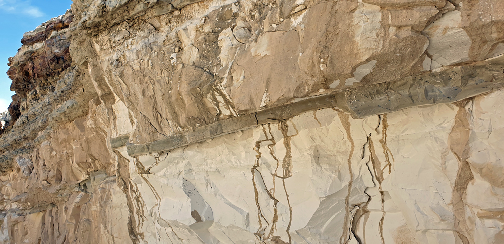 Zum Übernachten führt uns Don dann ins Stewart Valley, ein landschaftlich wie geologisch spannendes Gebiet mit zahlreichen Fossilienfunden aus dem Miozän (rund 23-5,3 Mio. Jahre BP). Zu Gesicht bekommen wir aber nur eine „Muschelbank“ und mit Calcit-Kristallen (?) gefüllte Spalten.