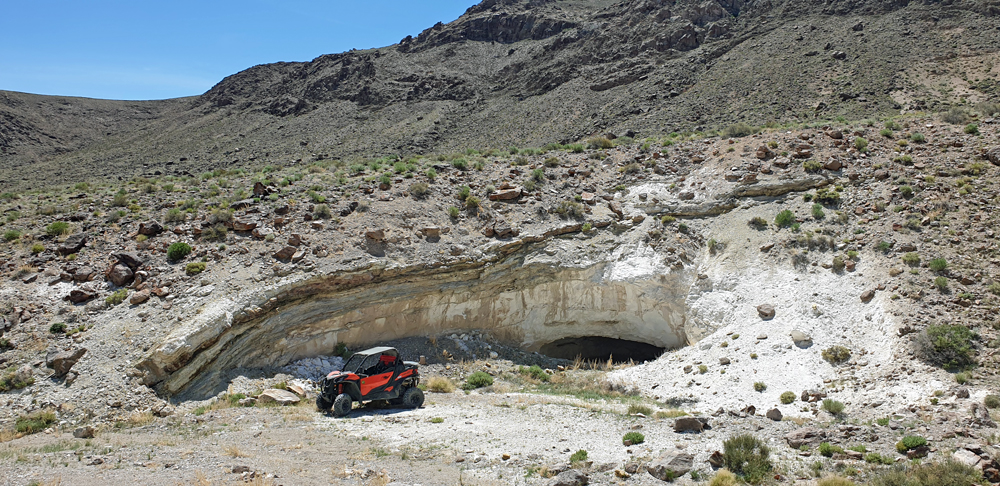 Wir verbringen eine Nacht auf der Nordostseite des Carson Sink, nicht weit von der «Humboldt Bar», von wo wir mit Dons ATVs einen Ausflug zur etwa 20 km entfernten Lovelock Höhle machen dürfen, die schon in prähistorischer Zeit besiedelt waren. Hier wurden dank guten Konservierungsbedingungen auch organisches Material, darunter sogar 11 aus Binsen gefertigte Lockvögel und aus Sagebrush geflochtene Sandalen gefunden. Für mich ist es der erste richtige Ausflug mit einem normalen ATV und ich mache zwischendurch die Bekanntschaft des einen oder anderen Gebüschs, bis ich mich daran gewöhnt habe…
