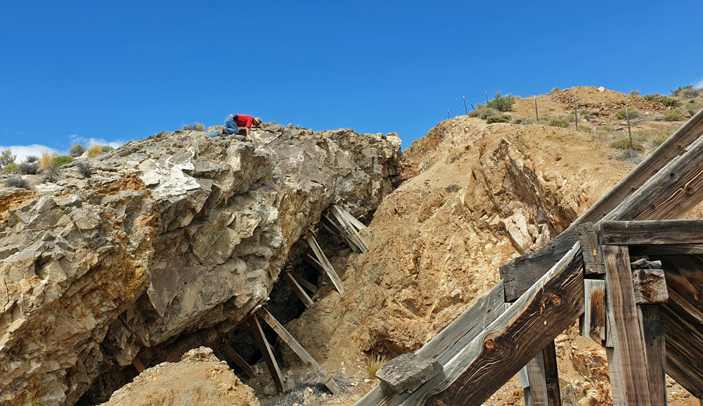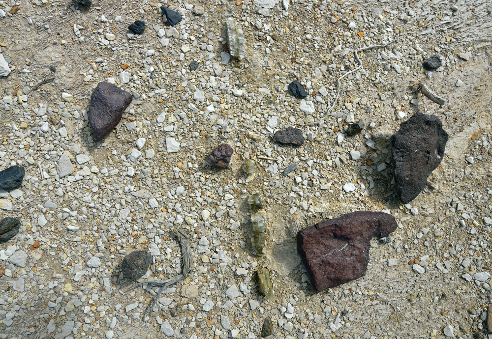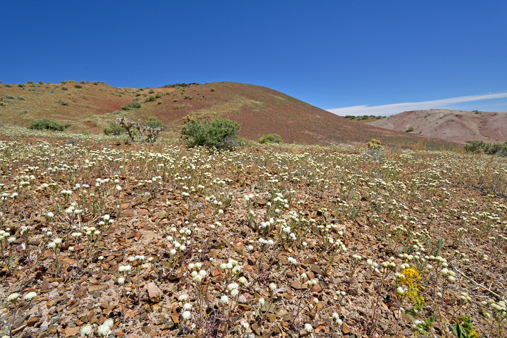 Wir bleiben zwei Tage hier und dürfen zwischendurch Bills Side-by-Side ausleihen, um die Gegend zu erkunden. Wir finden Kreideklippen mit teils wunderschönen, farbigen Radiolarit-Bändern, teils blumenbewachsene in verschiedenen Farben leuchtende Erosionshügel, einen Rhyolit-Steinbruch und eine mächtige glasig-graue Perlit-Schicht, die ebenfalls an mehreren Stellen abgebaut wurde. Auf den Karten tauchen die Stellen als «Obsidian Mine» auf, doch die abgerundeten und meist nur etwa haselnussgrossen Obsidianstücke (sog. «Apache Tears») waren nur ein Abfallprodukt der Perlit-Gewinnung. Wir müssen uns sehr zurückhalten, nicht das ganze Auto mit Obsidian und wunderschön strukturiertem, seidig-grauen Perlit zu füllen…