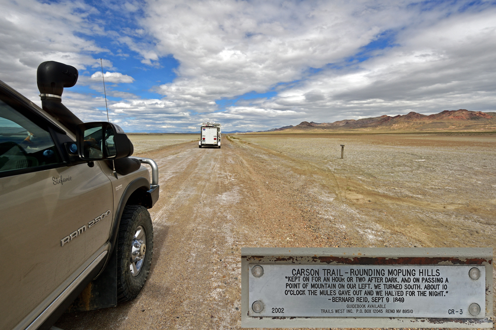 Am nächsten Tag ziehen wir um auf die Westseite des Humboldt Lake, wo sich die Carson und Truckee River Route des Kalifornia Trails getrennt haben. Bald stossen Dons Freunde Denis und Gill dazu, mit denen Don sich hier verabredet hat.