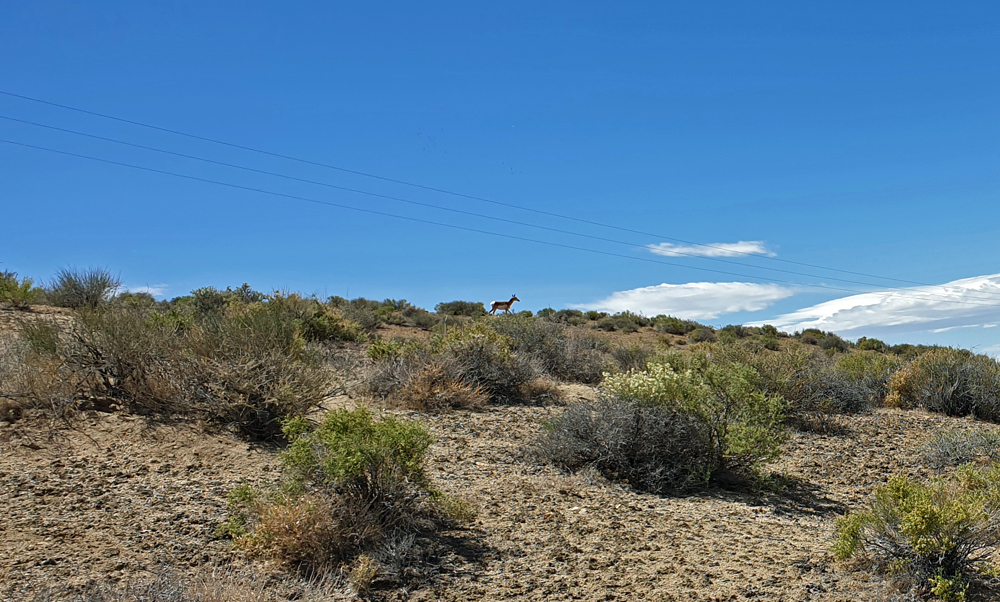 Zusammen machen wir Ausflüge in die Umgebung zu alten Minen und weiteren Überbleibseln menschlicher Betätigung in dieser kargen Gegend. Wir entdecken Horneidechsen und eine Antilopenfamilie, ein leider aufgelassenes Raubvogelnest, das von Don unter Einsatz seines Lebens fotografiert wird, begegnen Kunst am Weg, erleben wunderschöne Lichtstimmungen, einen Sandsturm und sogar Regen, der für Denis und Gill überhaupt kein Hindernis darstellt, ihre Ferien wie geplant zu verbringen.