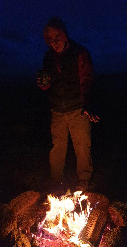 Denis und Gill haben einen grossen Haufen gutes Feuerholz und viele warme Decken mitgebracht, so dass wir die wegen des stetigen Windes eher kalten Abende gemütlich ausklingen lassen können.