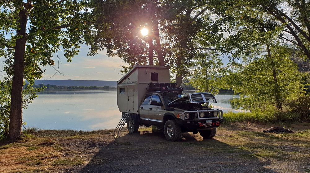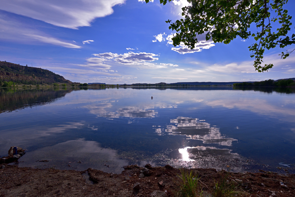 Wir fahren zum Banks Lake hinauf und suchen uns einen Übernachtungsplatz am Ufer des Osborn Bay Lake, der eigentlich nichts anderes als eine durch die WA-122 abgetrennte Bucht ist. Leider sind diverse Spots entlang des Seeufers stark vermüllt – wir sind hier wohl zu nahe an Electric City… –, aber wir haben dann doch noch Glück und finden einen freien, einigermassen sauberen Platz.