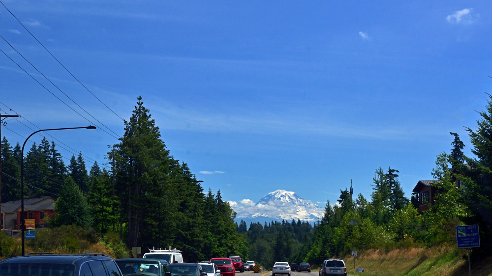 Vielleicht hat ja die schlechte Sichtbarkeit etwas damit zu tun, aber wir finden, dass Mount Rainier von der Ferne, d.h. Tacoma und Umgebung am beeindruckendsten aussieht. Von dort aus erhebt er sich ganz allein hoch über die Küstenebene und man bekommt aus der Distanz den vollen Eindruck dieses gewaltigen Vulkans.