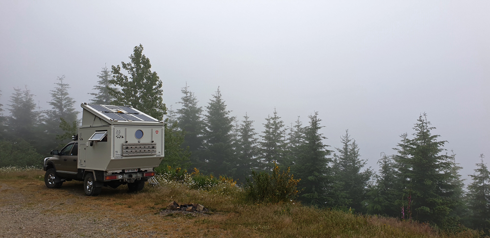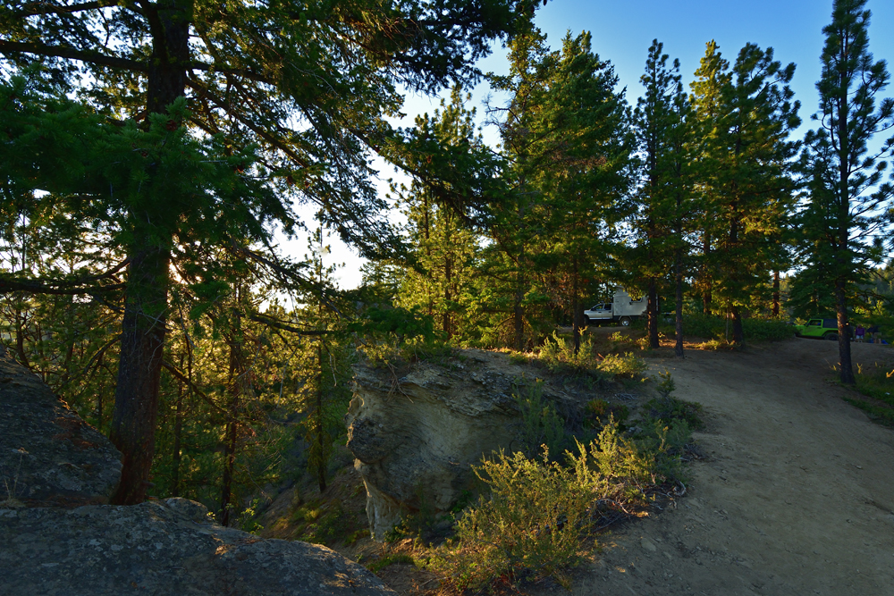 Dank iOverlander finden wir einen sehr schönen Übernachtungsplatz entlang dem Hwy 97. Er liegt oben auf einem Berg in der Nähe einer Felsnase, die offenbar auch gerne für Poser-Pics genutzt wird…