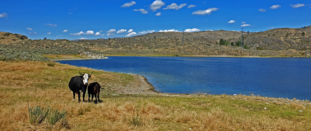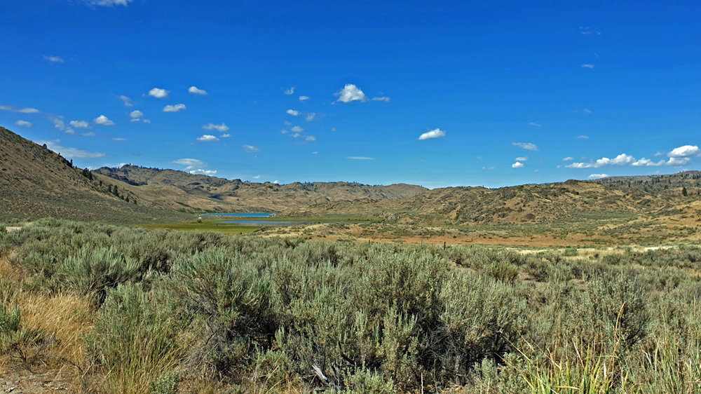 Wir finden schliesslich – auch wieder dank iOverlander – einen spektakulären Übernachtungsplatz am kleinen Soap Lake (nicht zu verwechseln mit dem gleichnamigen Ort und See in der etwas weiter westlich gelegenen Grand Coulee). Er liegt auf einem Hochplateau über dem Okanagan River, das zur Colville Reservation gehört. Auch diese Reservation wäre wegen Corona möglichst schnell zu durchfahren, wie uns Leuchttafeln informieren, aber das Hochplateau ist – abgesehen von einigen Kühen – völlig unbesiedelt und leer, weshalb wir wir uns erlauben, trotzdem hier stehenzubleiben. Aufgrund der darin enthaltenen Mineralien ist dieser See im Gegensatz zu den anderen kleinen Seen in der Umgebung türkisblau und erinnert uns von seiner Farbe her an die Bahía Concepción in Baja California. Der See ist auch ein kleines bisschen salzig, hinterlässt im Gegensatz zum Meer aber ein leicht seifiges Gefühl auf der Haut (deshalb wohl der Name… 😊 ). Wir geniessen diesen speziellen Ort sehr, nicht zuletzt wegen der ganz unterschiedlichen Zustände und Farben des Sees, die sich je nach Windstärke und Lichteinfall dramatisch ändern.